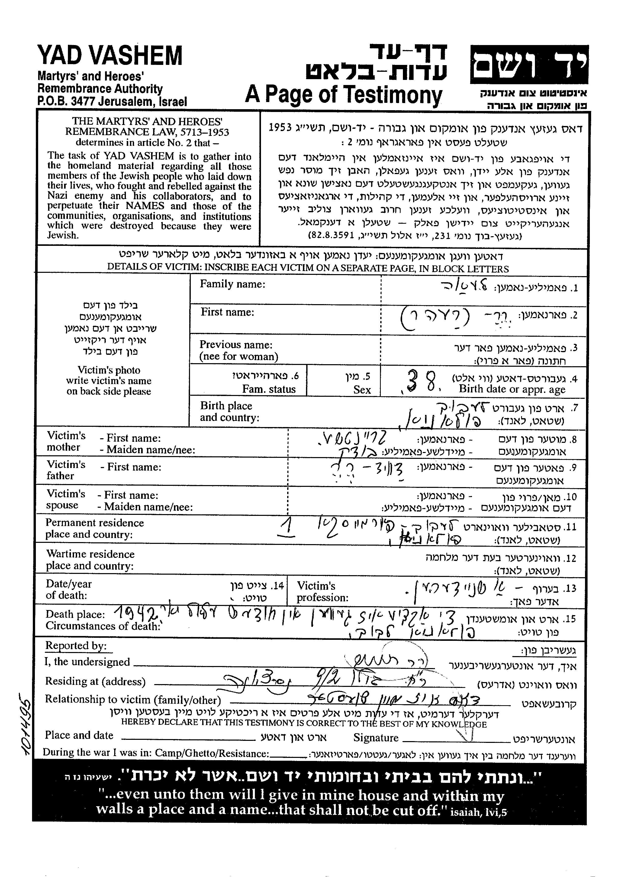 Lea wurde in der Schoah ermordet. Todesort: unbekannt im Jahr 1942.