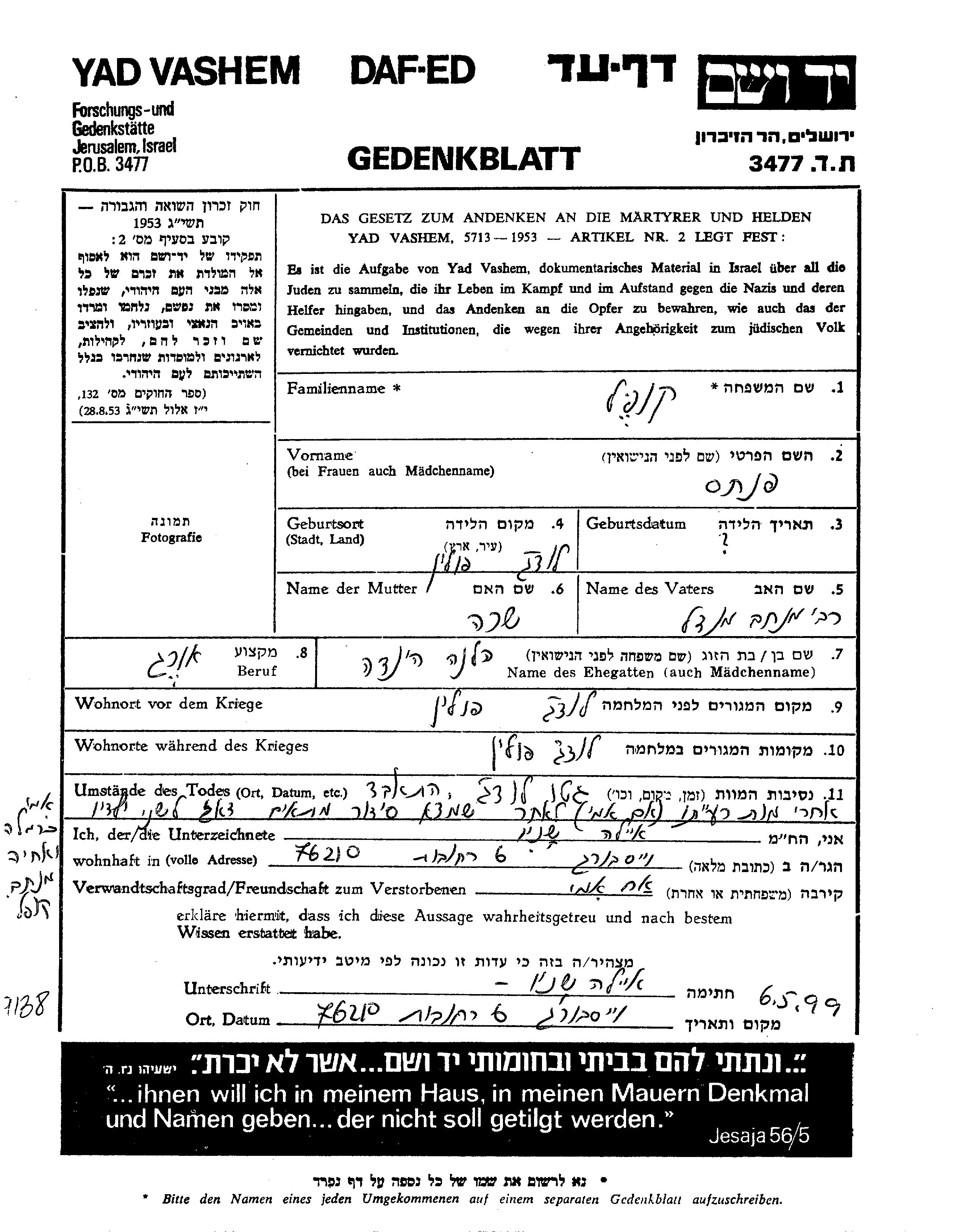 Pinkhas Jechel Yitzkhak wurde in der Schoah ermordet. Todesort: Lodz, Polen im Jahr 1942.