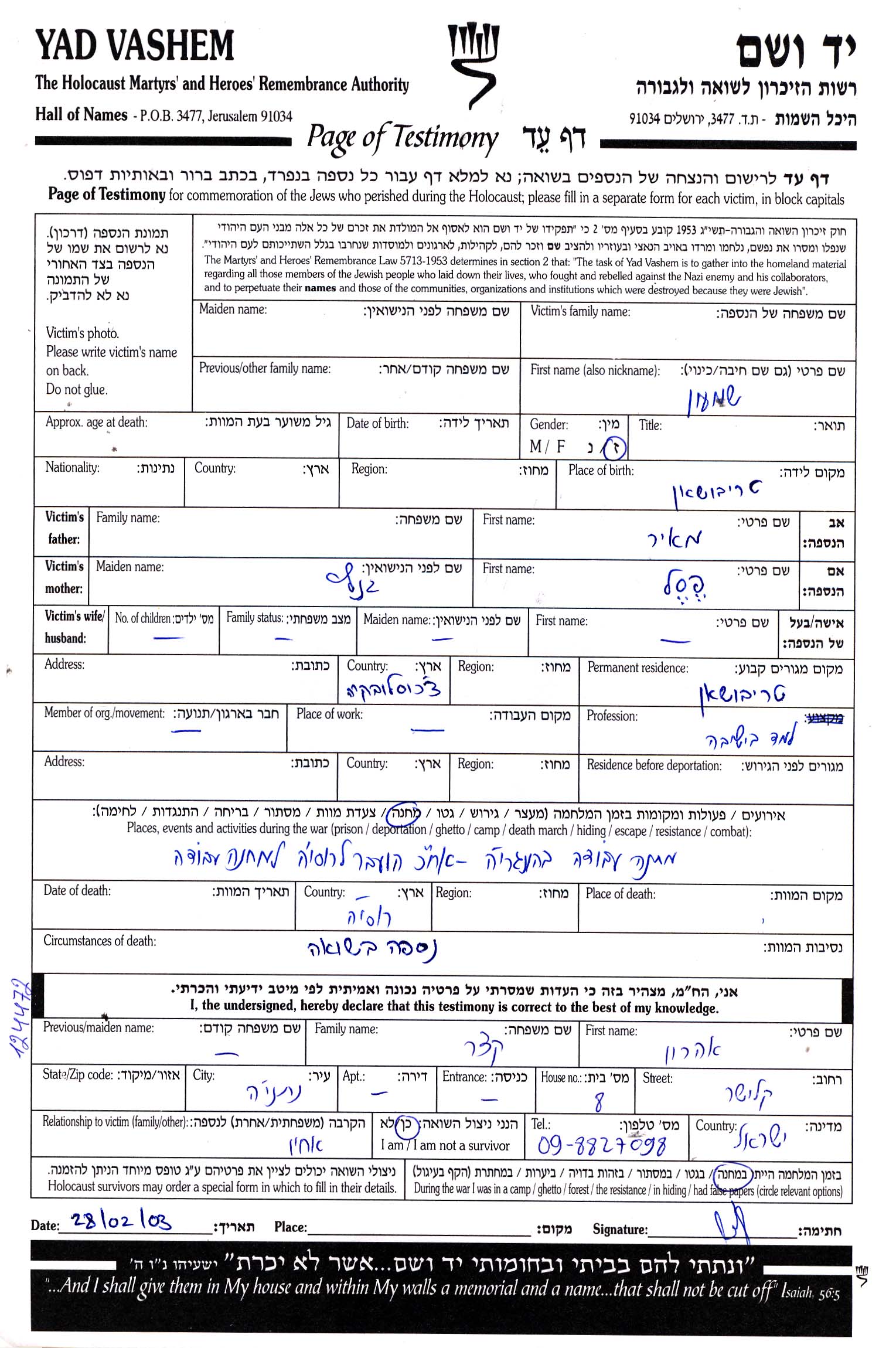 Shimon wurde in der Schoah ermordet. Todesort: Polen im Jahr 1943.