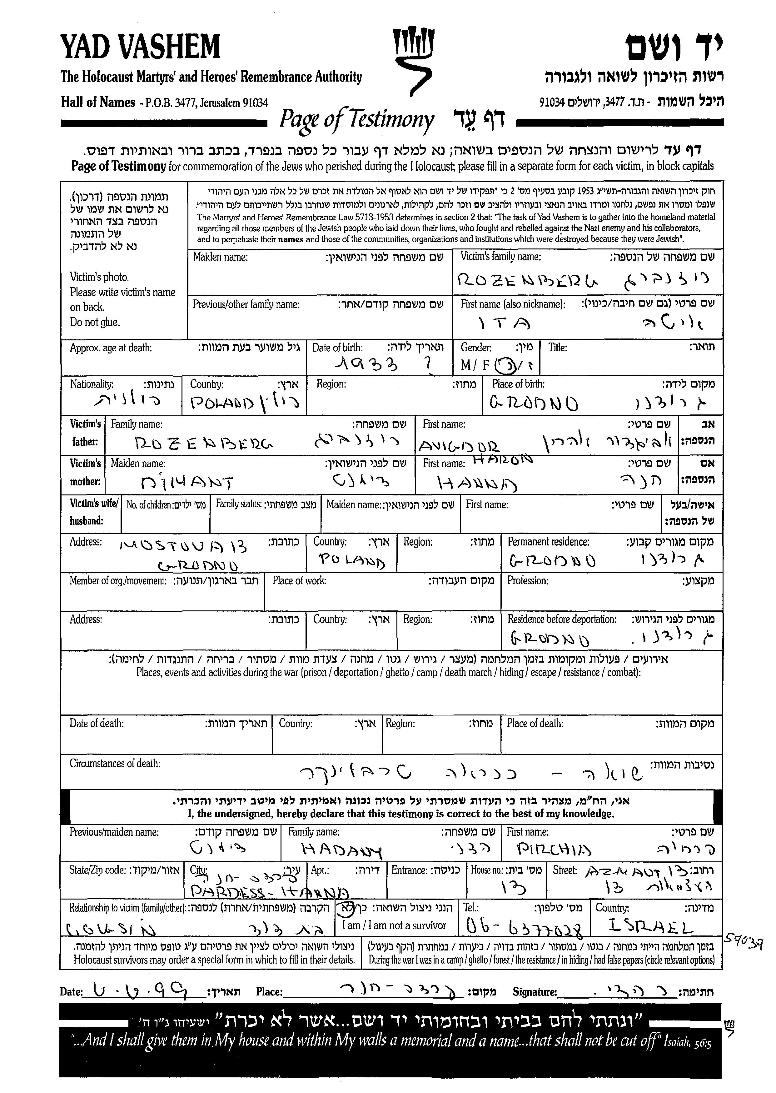 Rozenberg Ita Grodno, Polen Gedenkblatt