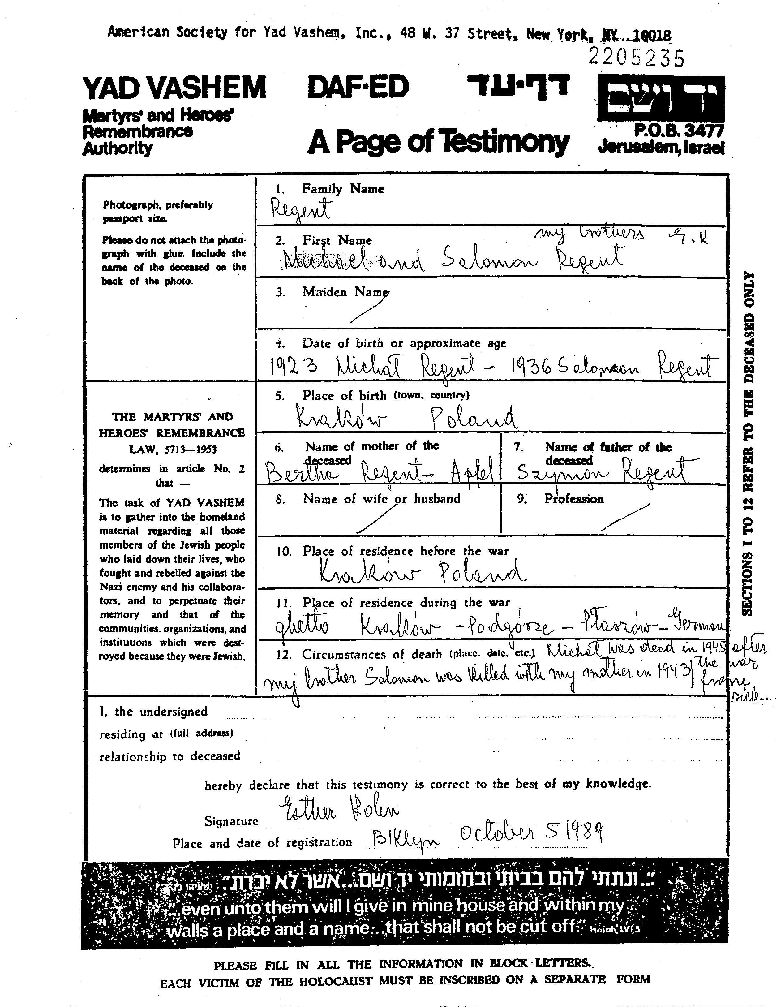 Mikhael Reghent wurde im Jahr 1923 in Krakow, Polen geboren. Vor dem Zweiten Weltkrieg lebte er in Krakow, Polen.