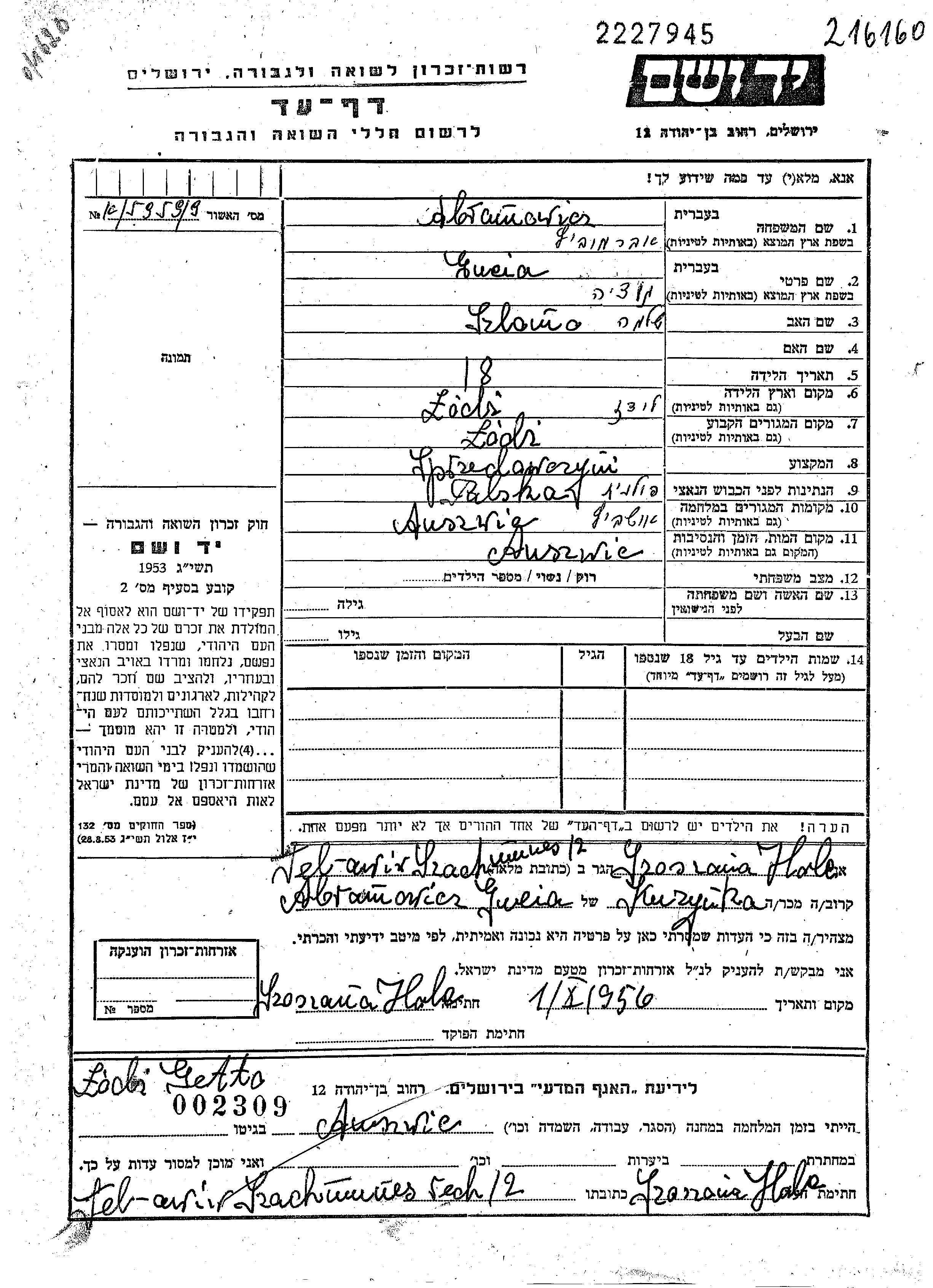 Gucia Gucha Abramowicz wurde in Lodz, Polen geboren. Sie war die Tochter von Szlomo. Sie war Verkäufer/-in und Ledig. Vor dem Zweiten Weltkrieg lebte sie in Lodz, Polen. Während des Krieges war sie in Lodz, Polen.