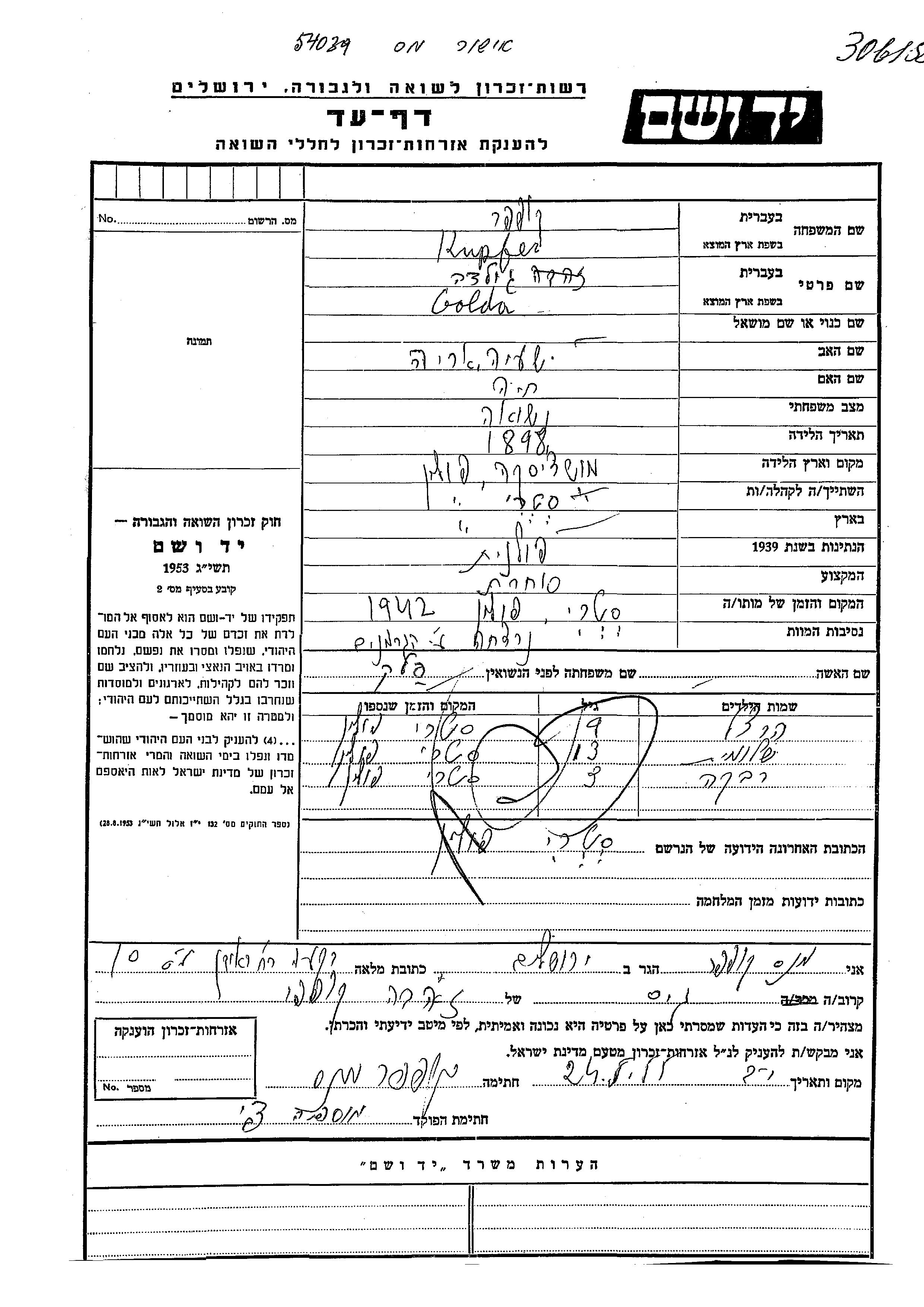 Golda wurde in der Schoah ermordet. Todesort: Stryj, Polen im Jahr 1942.