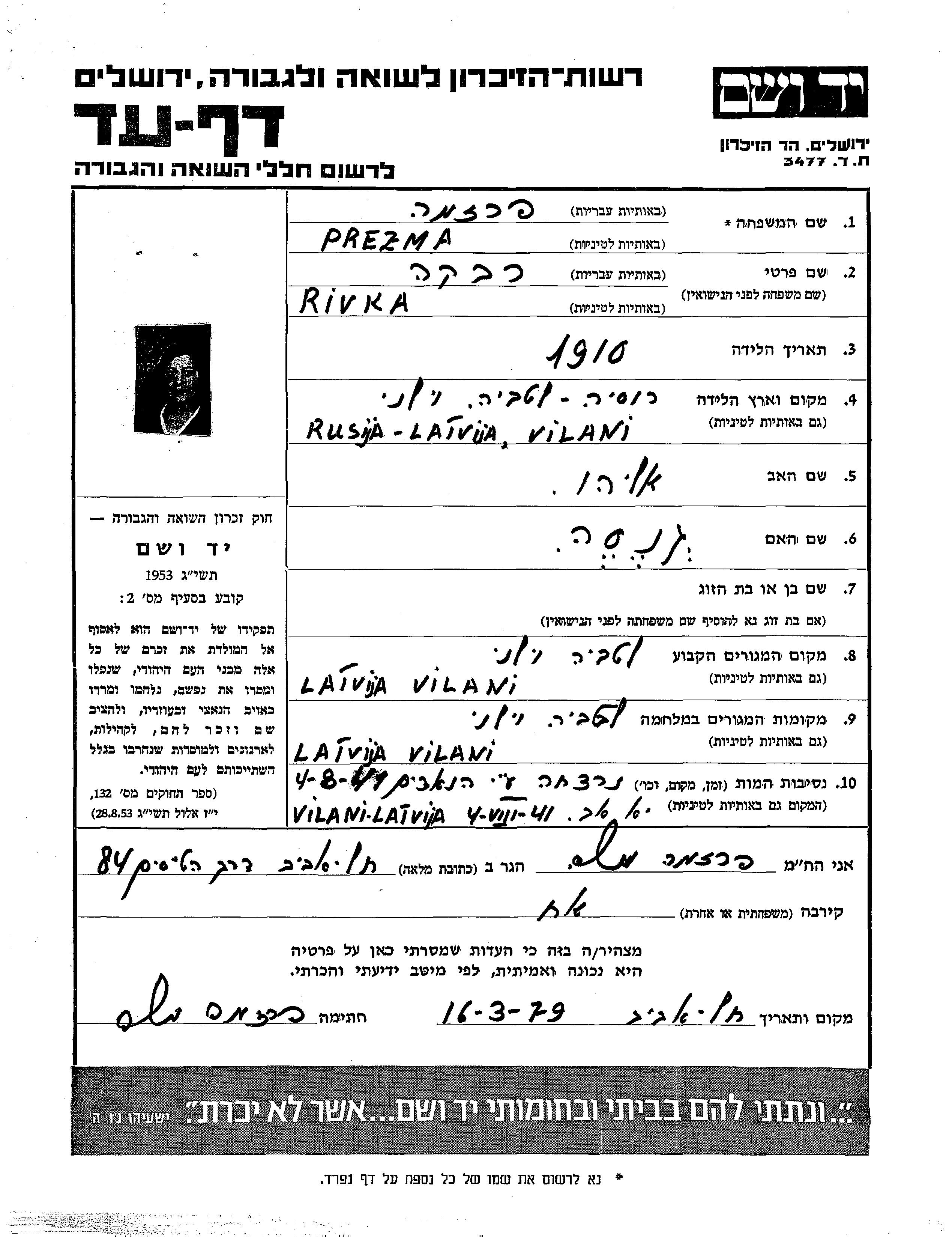 Rivka wurde in der Schoah ermordet. Todesort: Vilani, Lettland im Jahr 1941.