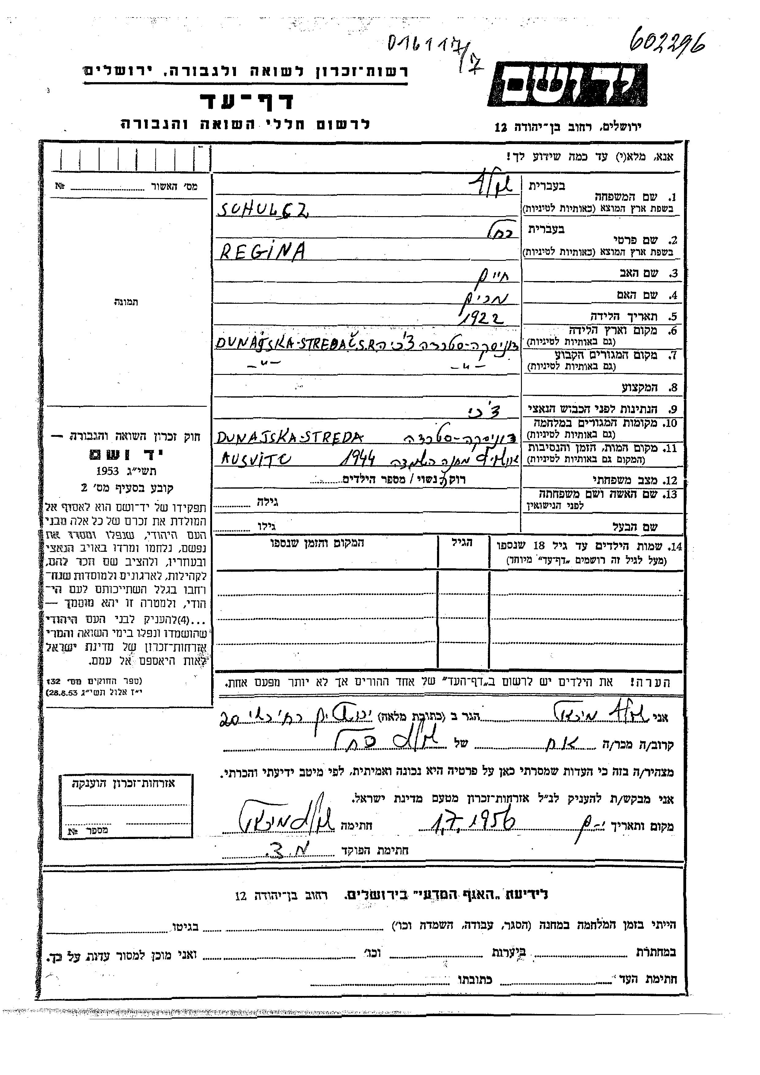 Schulcz | Regina Rakhel | 1922 | Dunajska Streda, Tschechoslowakei | Gedenkblatt |