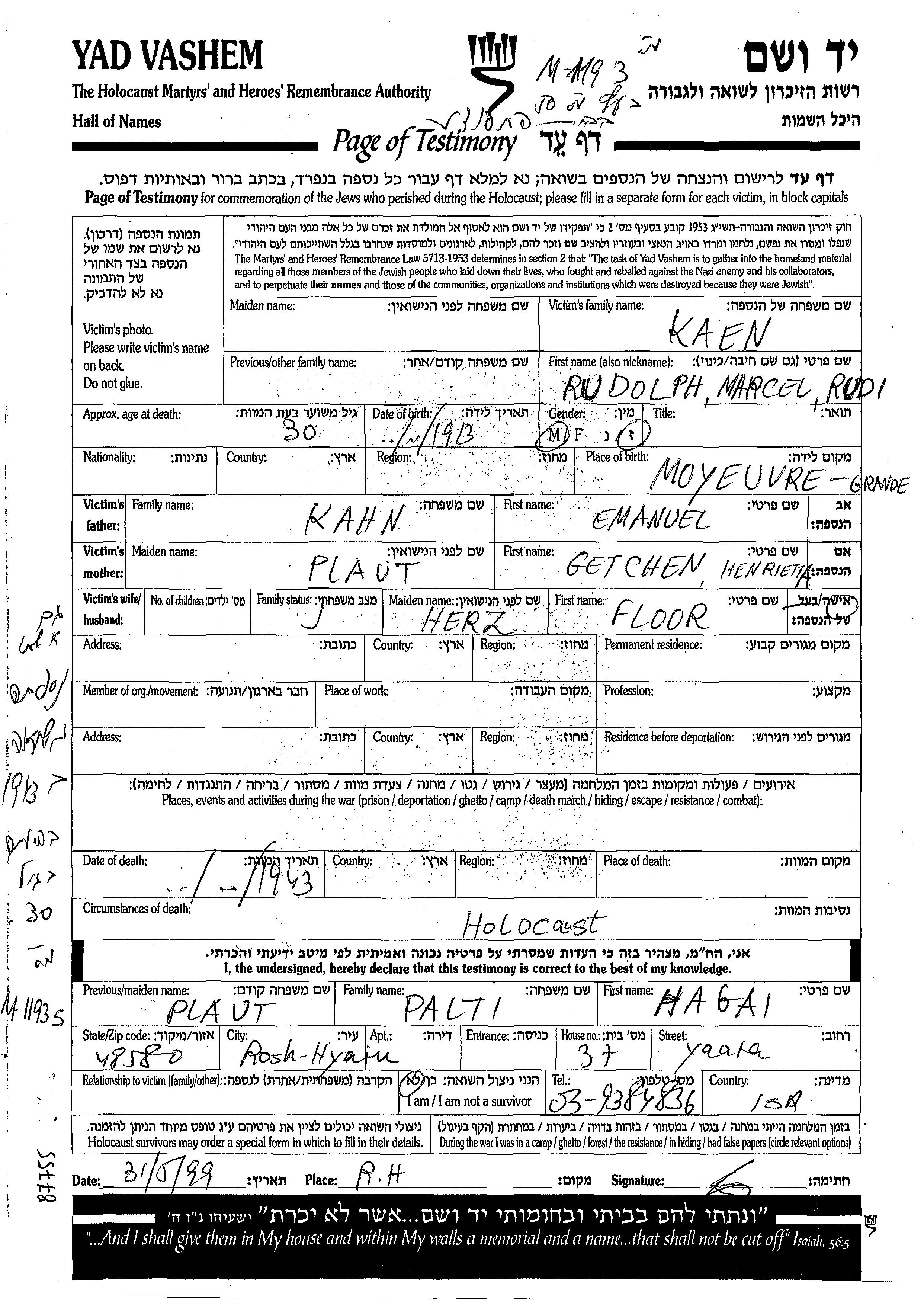 Rudolf Marcel wurde in der Schoah ermordet. Todesort: Auschwitz, Polen im Jahr 1943.