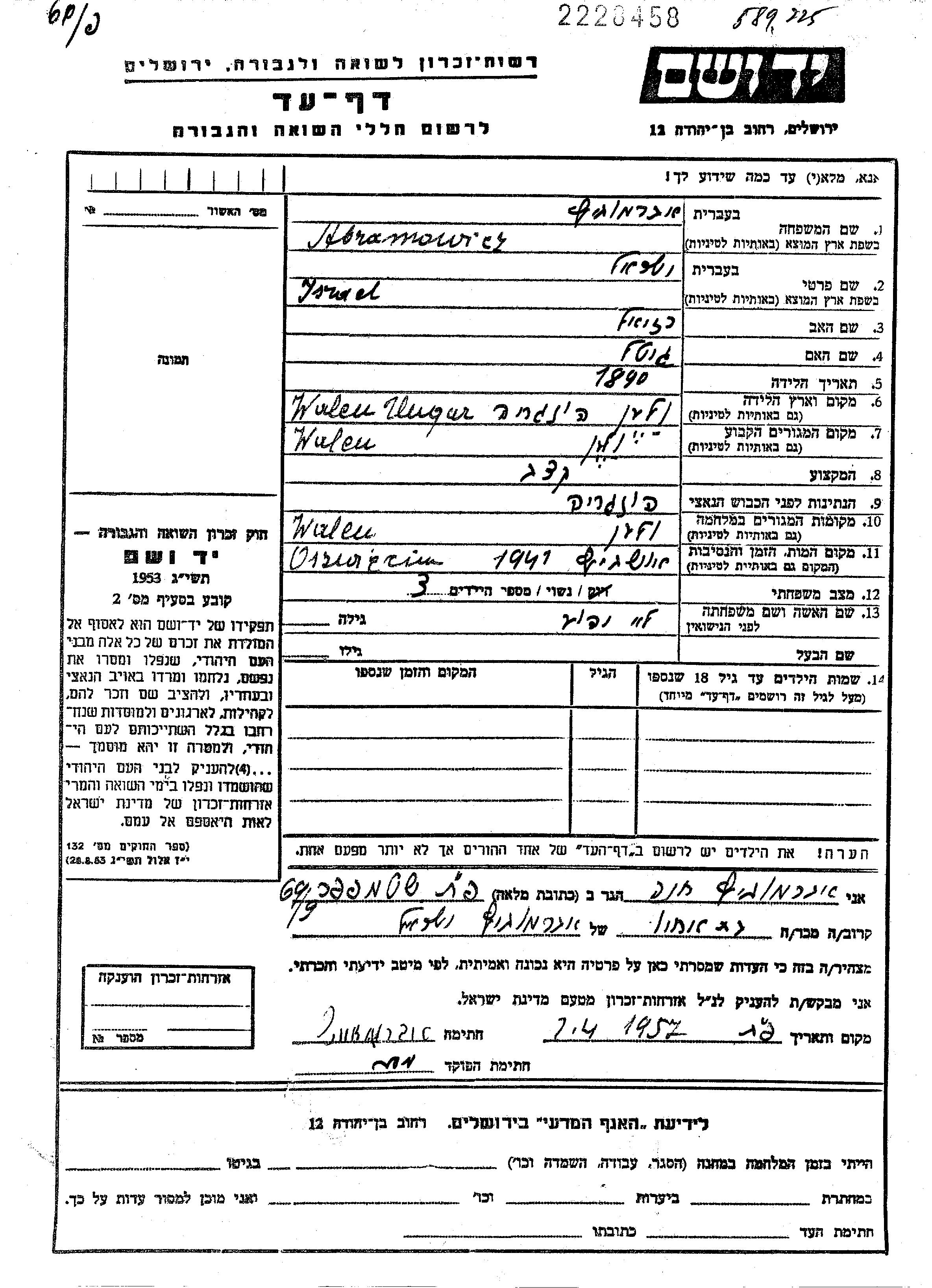 Yisrael wurde in der Schoah ermordet. Todesort: Auschwitz, Polen.
