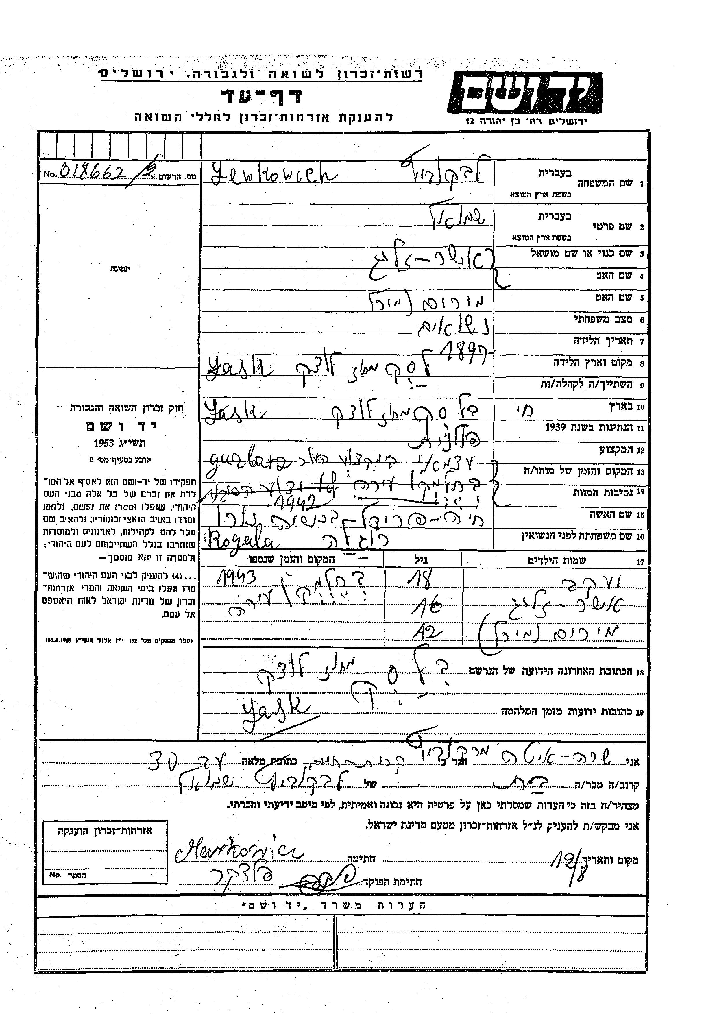 Shmuel Lewkowicz wurde in Lask, Polen geboren. Vor dem Zweiten Weltkrieg lebte er in Lask, Polen.