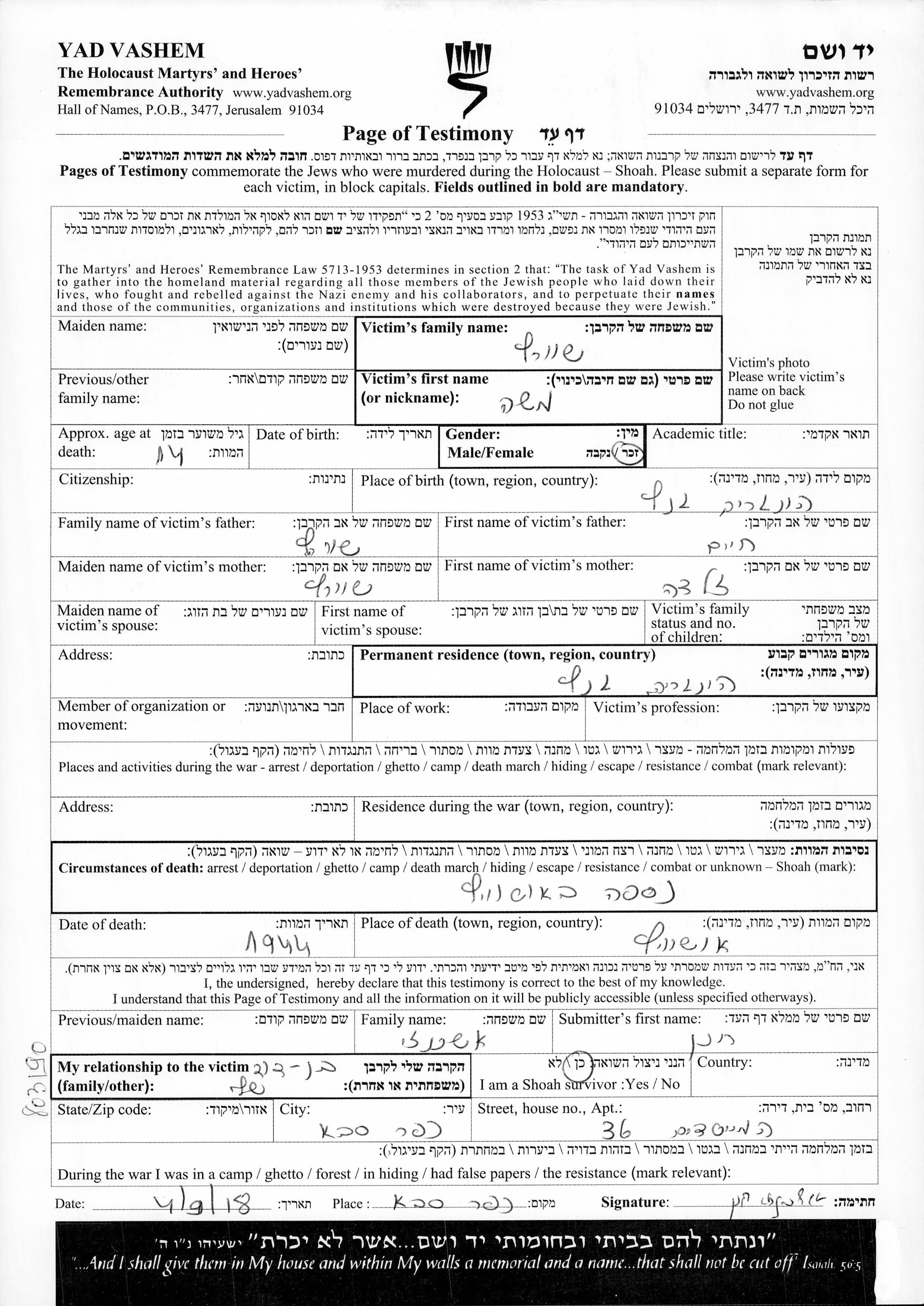 Moshe wurde in der Schoah ermordet. Todesort: Auschwitz, Polen im Jahr 1944.