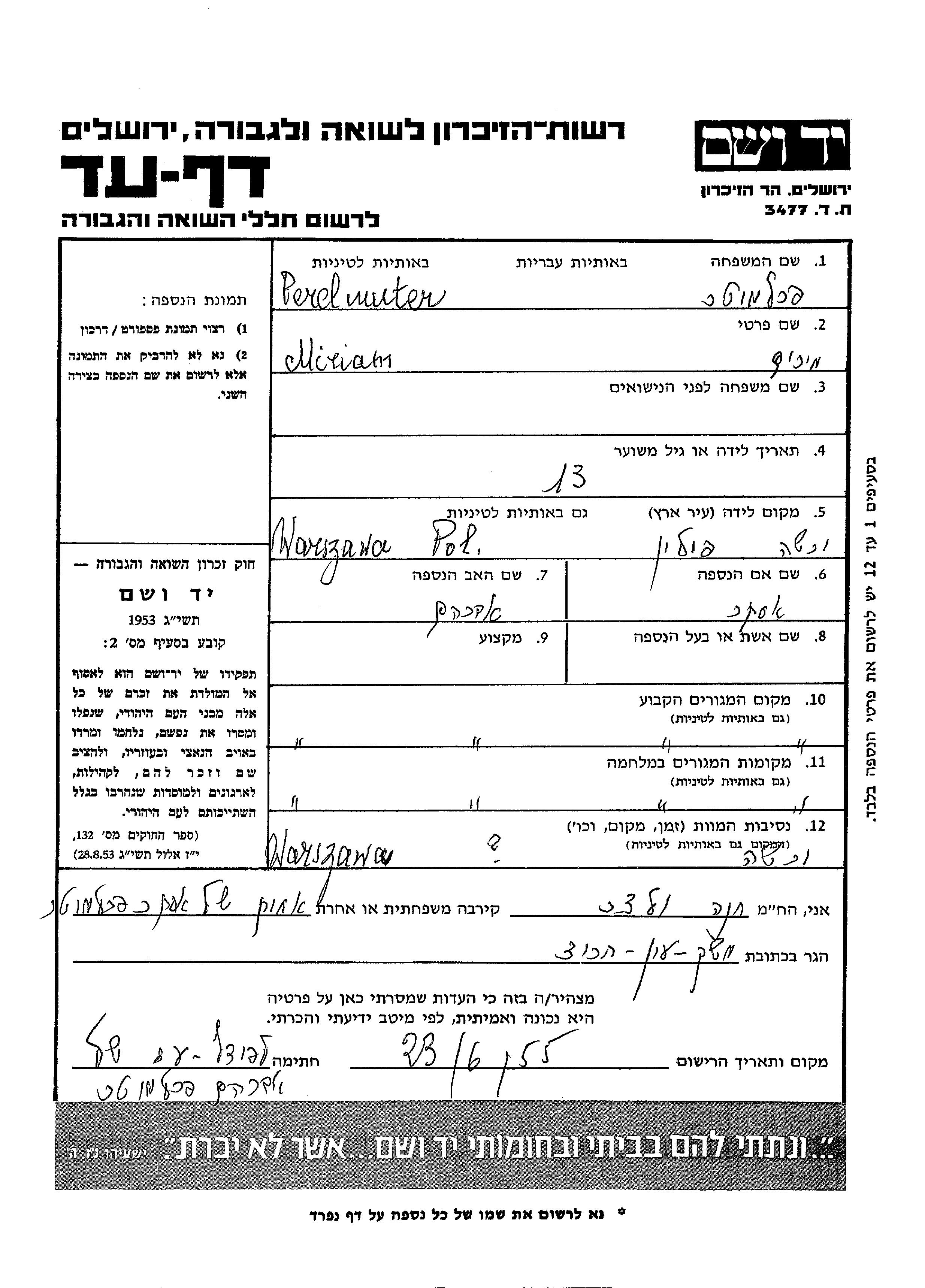Miriam wurde in der Schoah ermordet. Todesort: Warszawa, Polen.