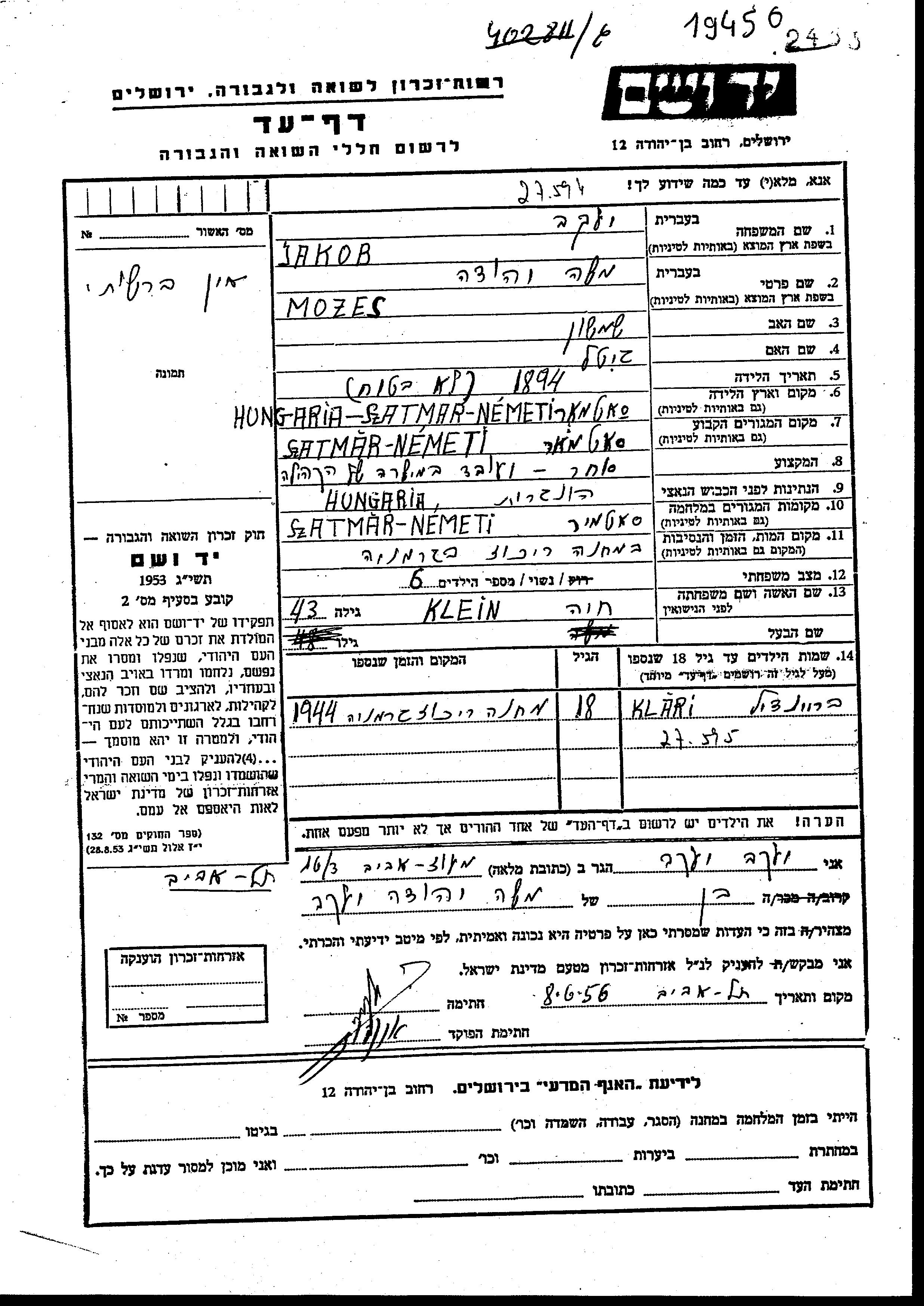 Klari Breindil Jakob wurde im Jahr 1927 in Satu Mare, Rumänien geboren. Vor dem Zweiten Weltkrieg lebte sie in Satu Mare, Rumänien.