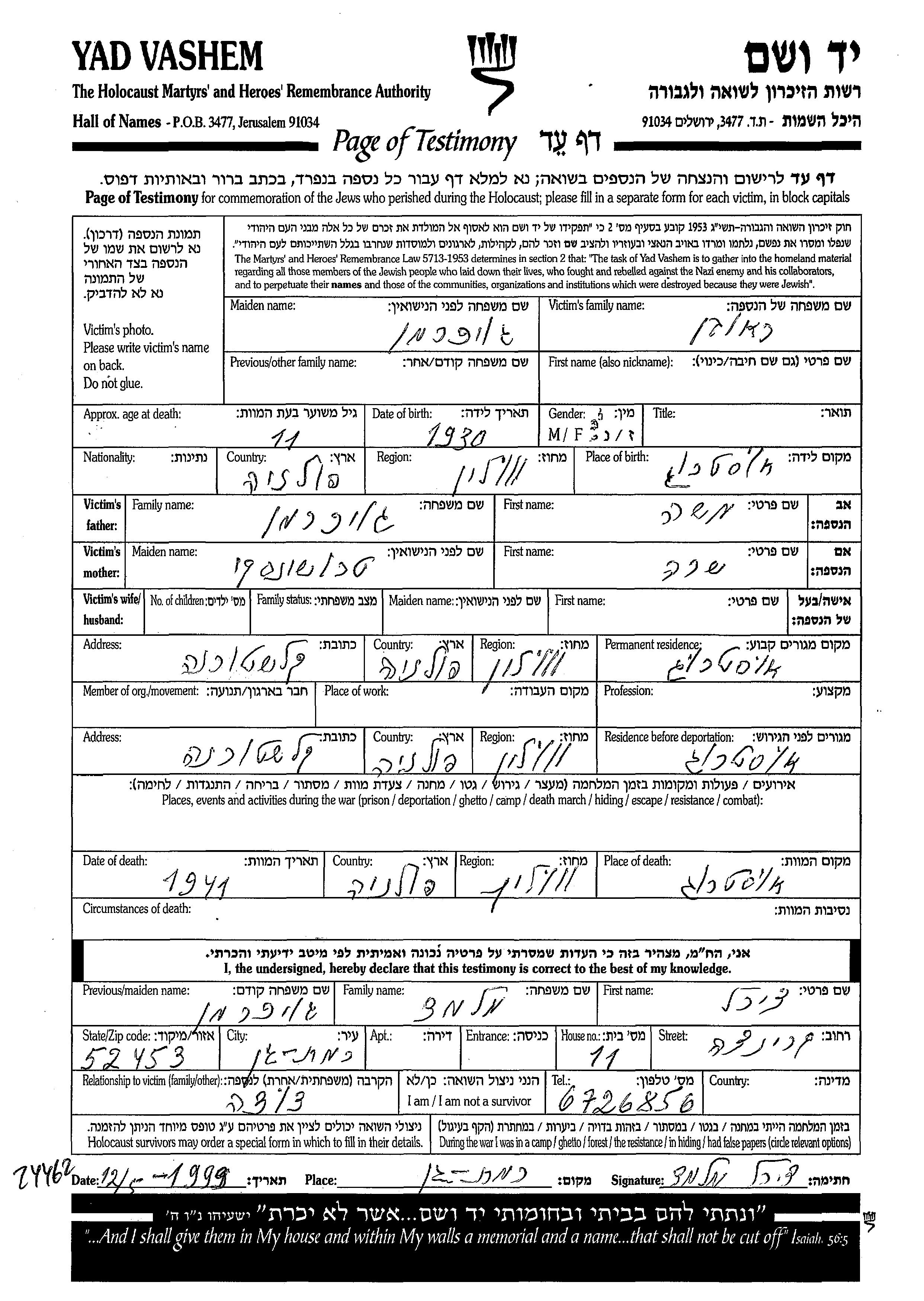 Reuven wurde in der Schoah ermordet. Todesort: Ostrog, Polen im Jahr 1941.