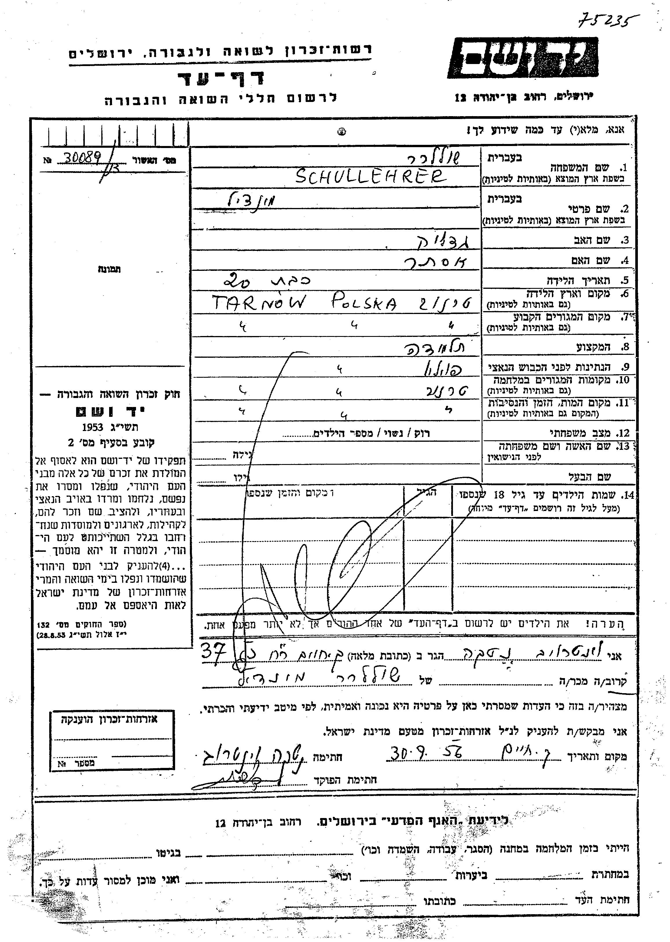Mindl Mendel Schullehrer wurde im Jahr 1917 in Tarnow, Polen geboren. Sie war Schüler/-in. Vor dem Zweiten Weltkrieg lebte sie in Tarnow, Polen.