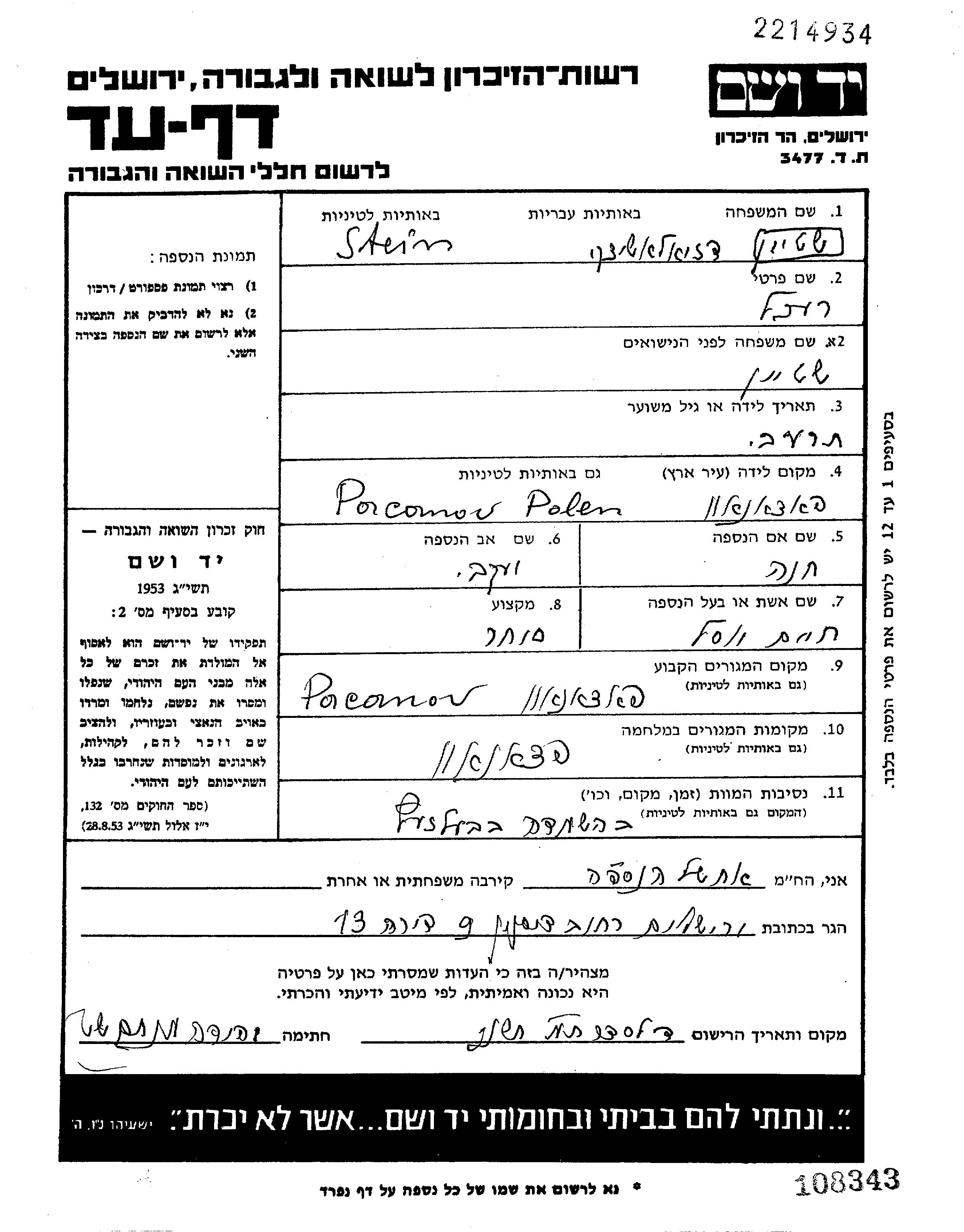 Rakhel wurde in der Schoah ermordet. Todesort: unbekannt im Jahr 1943.