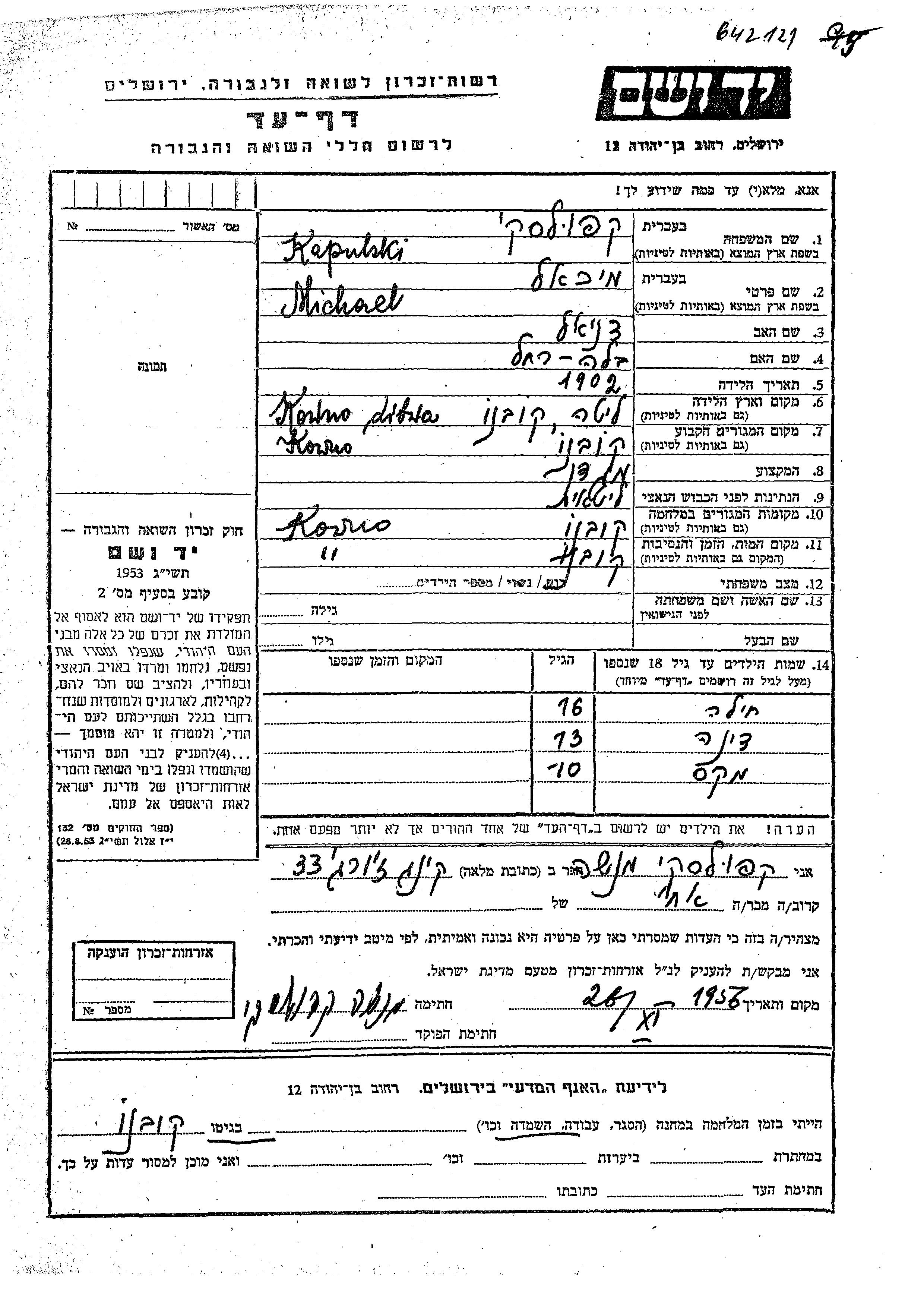 Mikhael Kapulski wurde im Jahr 1902 in Kaunas, Litauen geboren. Vor dem Zweiten Weltkrieg lebte er in Kaunas, Litauen.