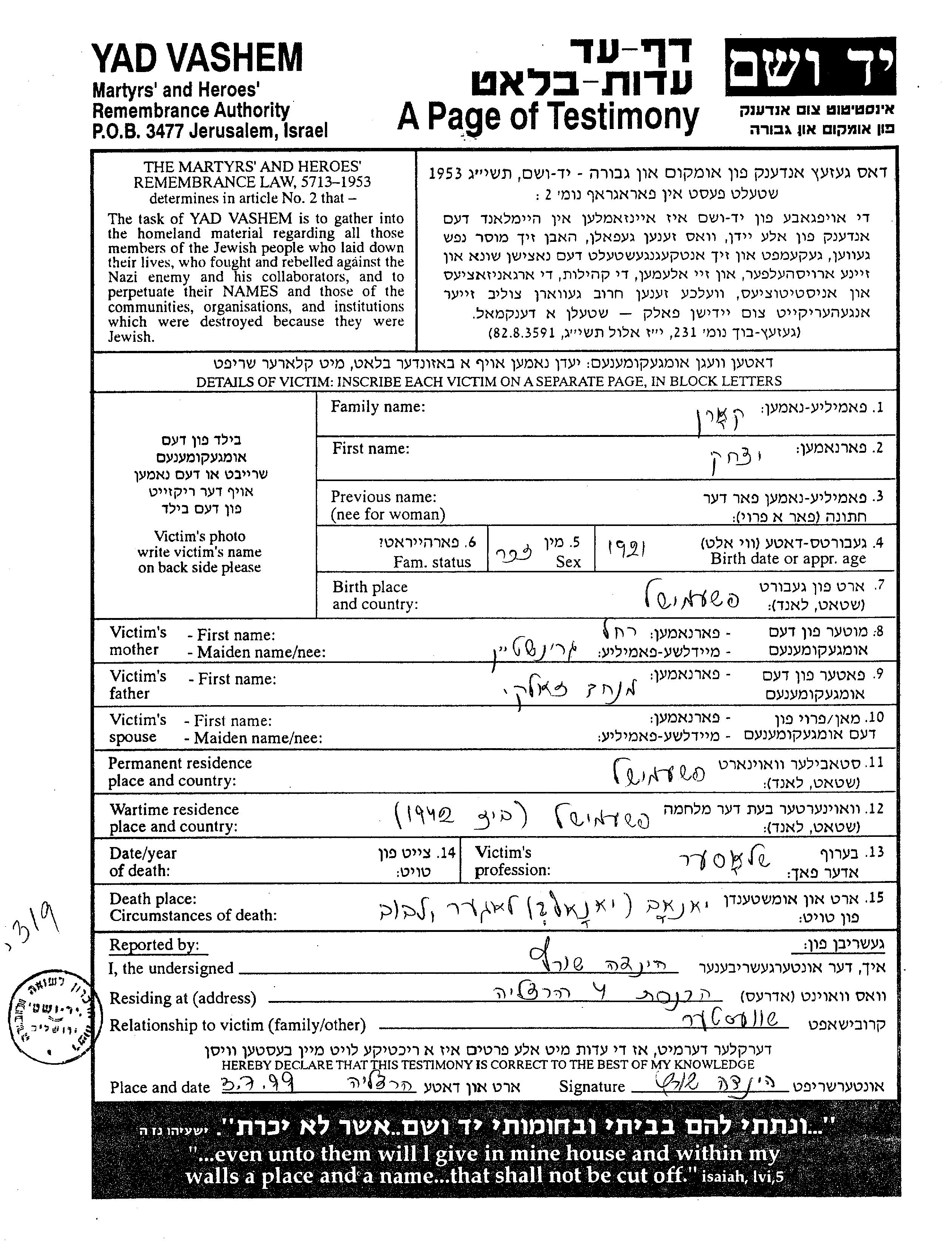 Yitzkhak wurde in der Schoah ermordet. Todesort: unbekannt im Jahr 1942.