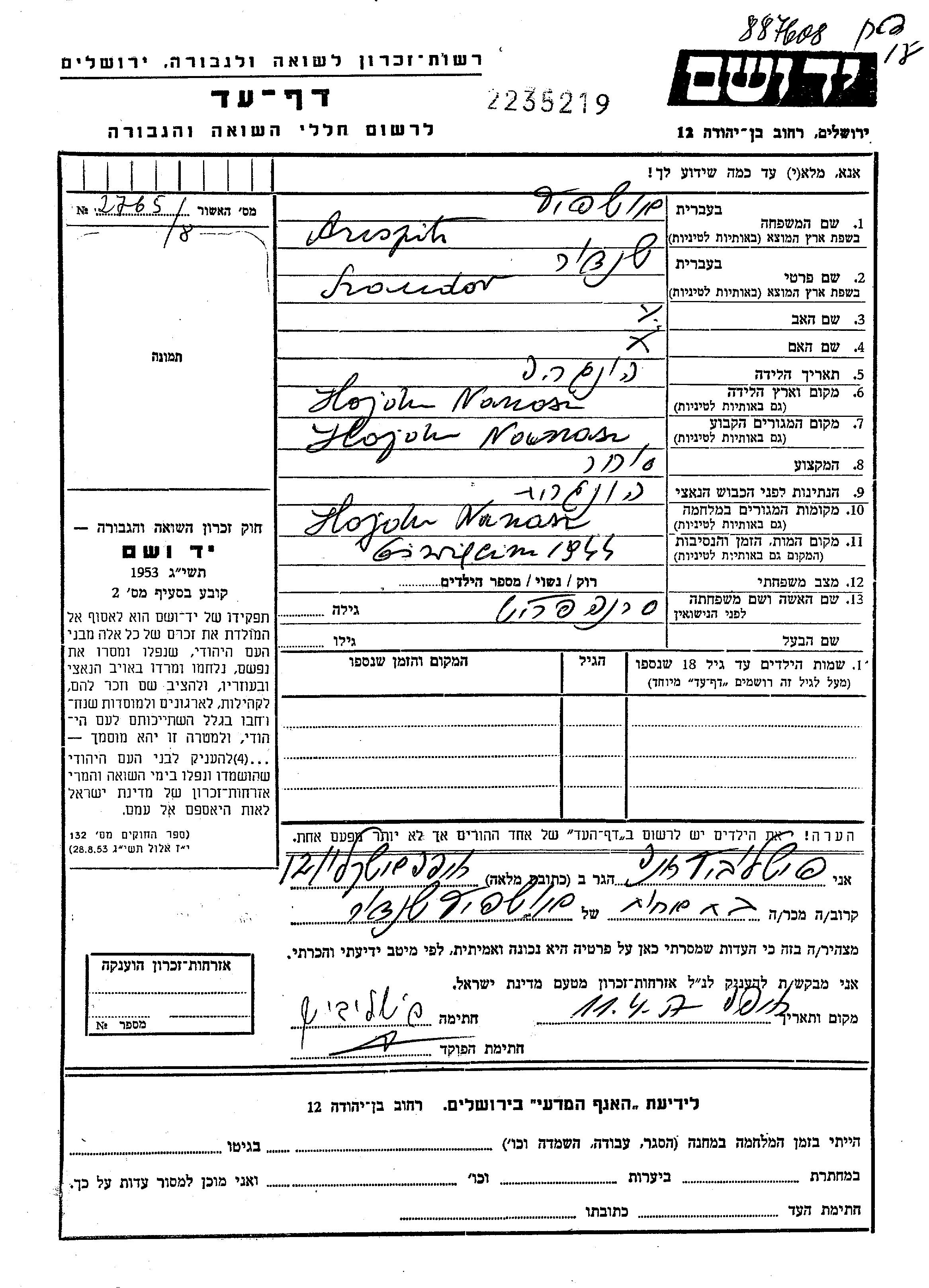 Szandor wurde in der Schoah ermordet. Todesort: Auschwitz, Polen im Jahr 1944.