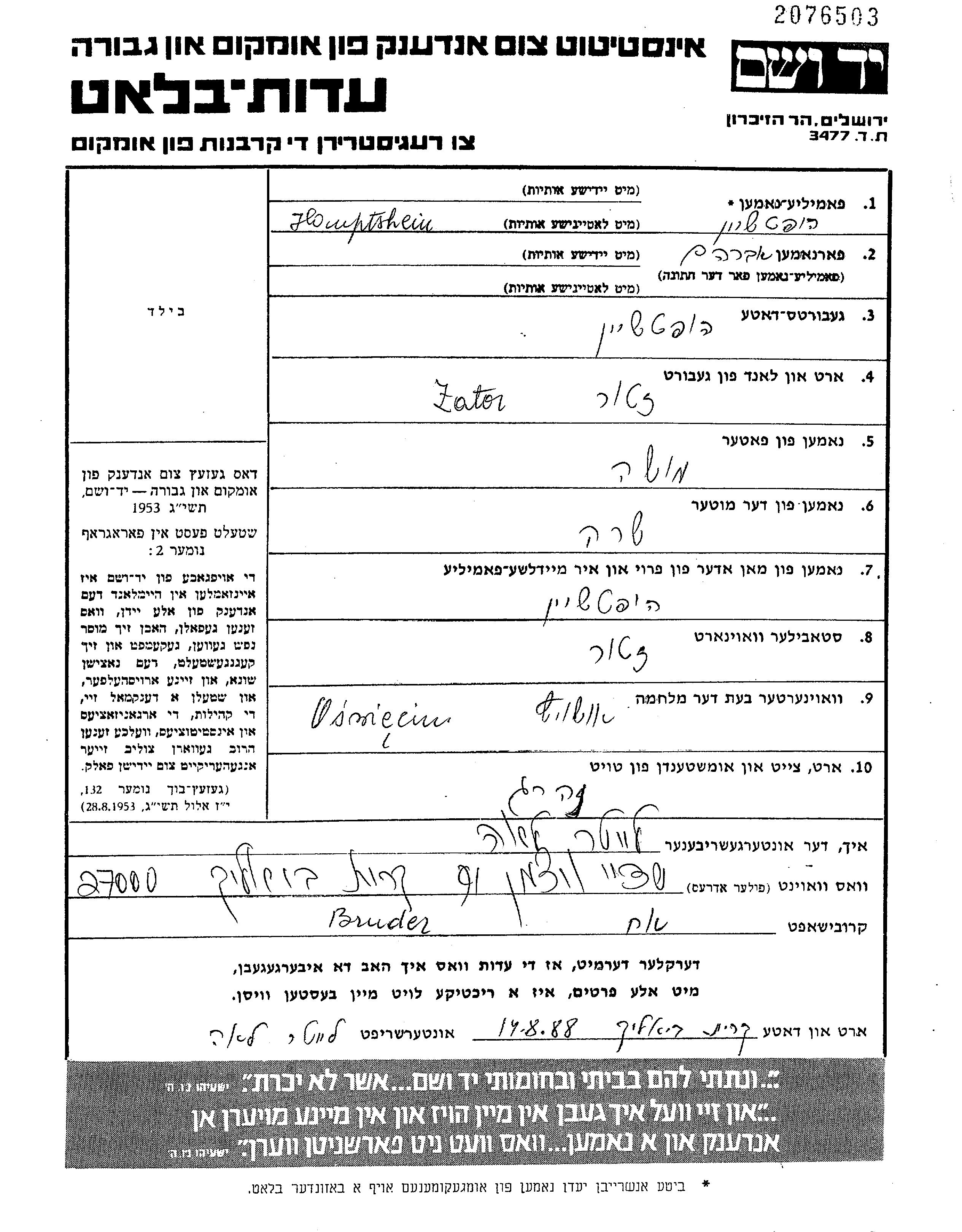 Hauptshein Hoiptshein | Avraham | Zator, Polen | Gedenkblatt | |