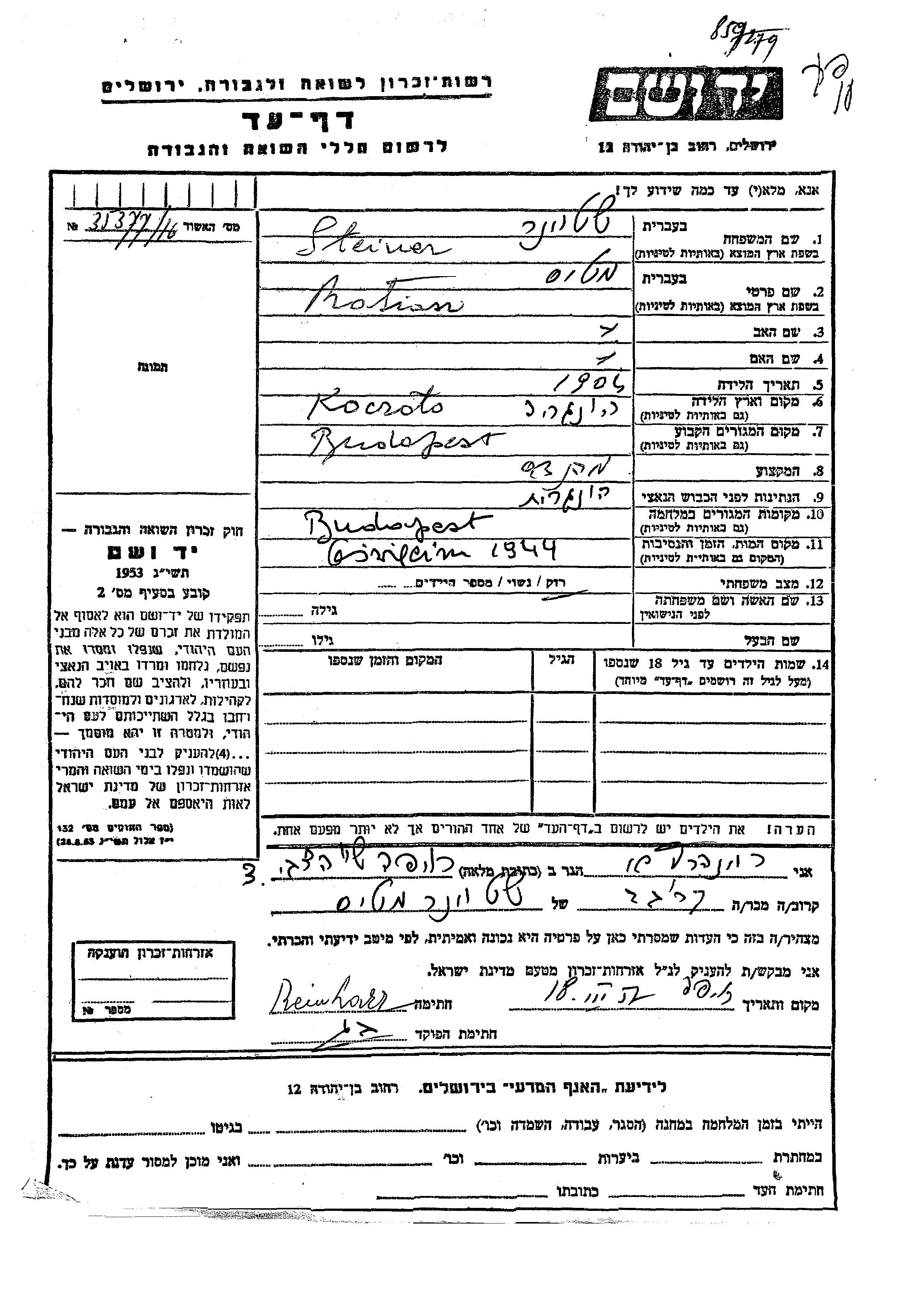 Motiasz Matis Steiner wurde im Jahr 1904 in Kocsola, Ungarn geboren. Er war Ingenieur und Ledig. Vor dem Zweiten Weltkrieg lebte er in Budapest, Ungarn. Während des Krieges war er in Budapest, Ungarn.