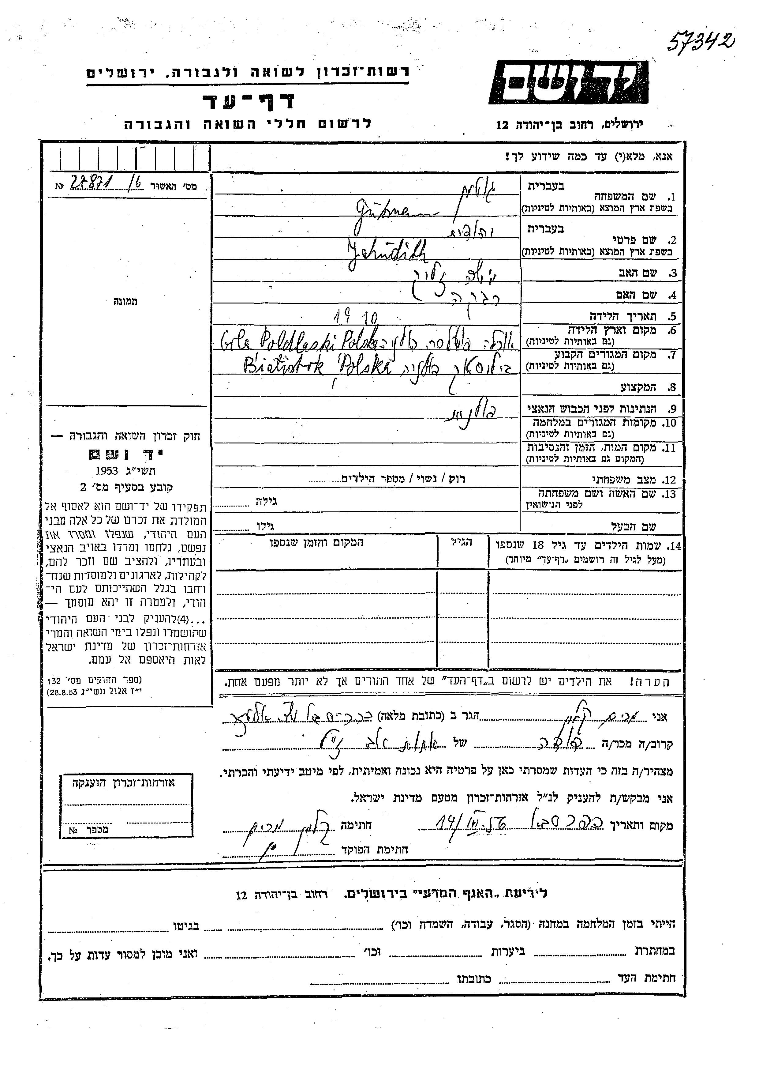 Yehudit wurde in der Schoah ermordet. Todesort: unbekannter Ort.