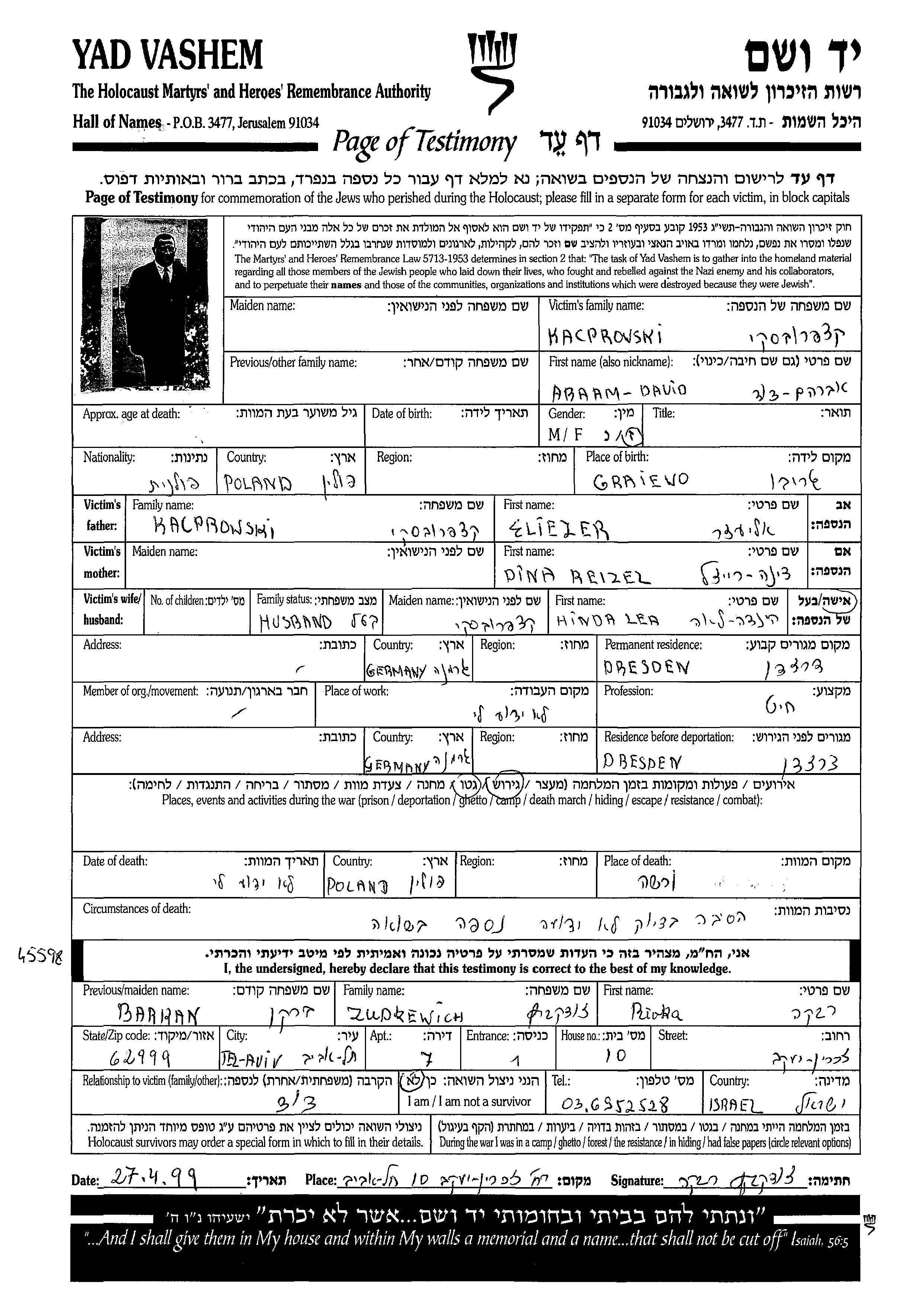 | Kacprovski | David Avraham | 1883 | Dresden, Deutsches Reich | Photos |