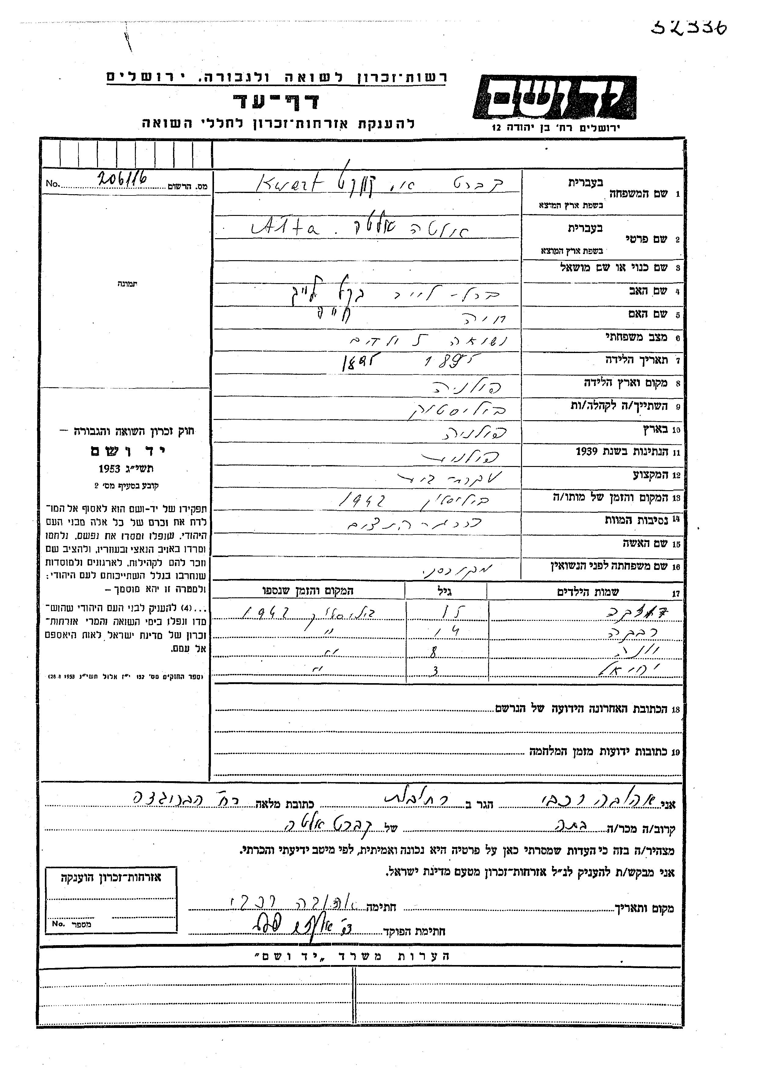 Yekhiel Kabaret Kwart. Vor dem Zweiten Weltkrieg lebte er in Bialistok, Polen.