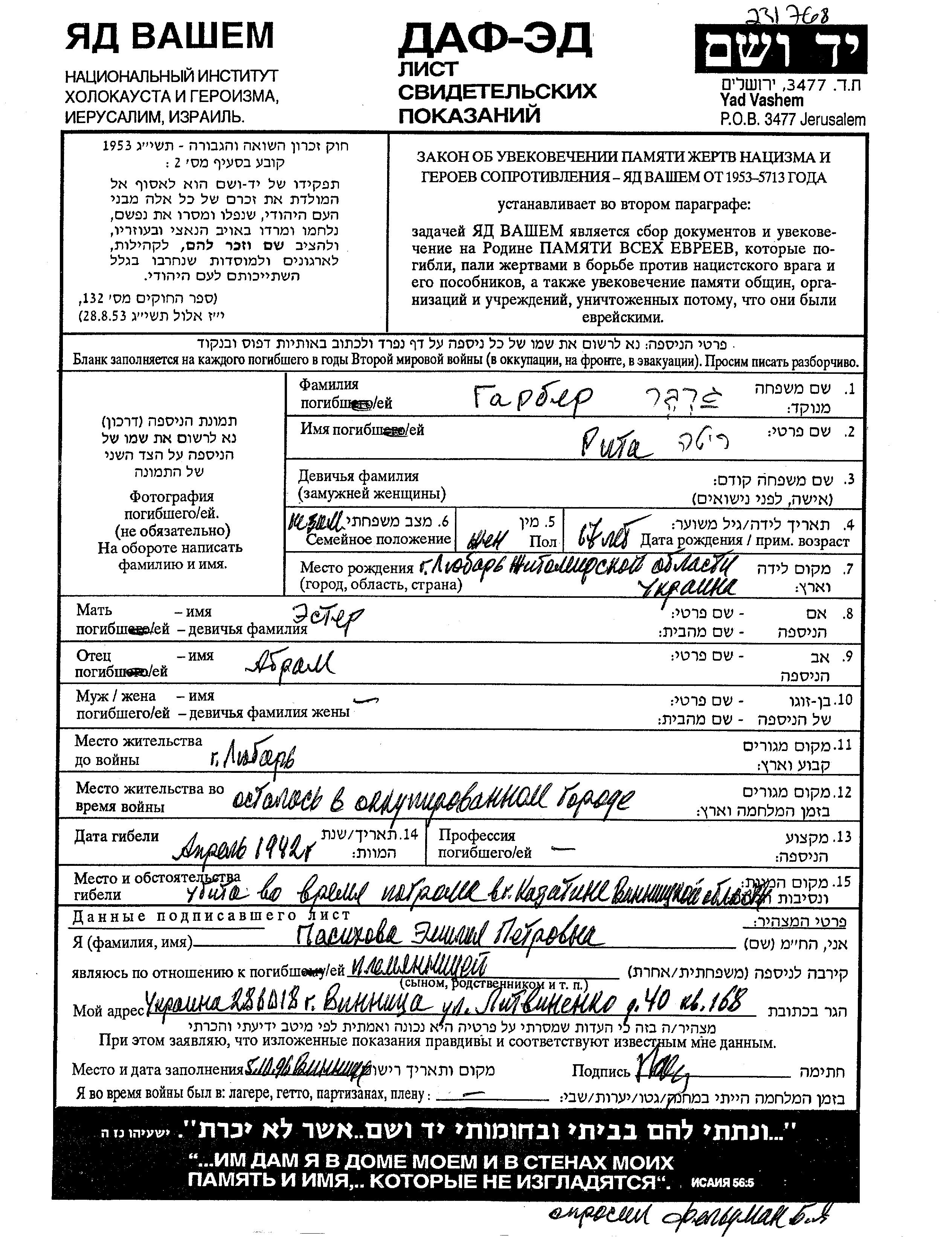 Rita wurde in der Schoah ermordet. Todesort: Kazatin, Ukraine (UdSSR).