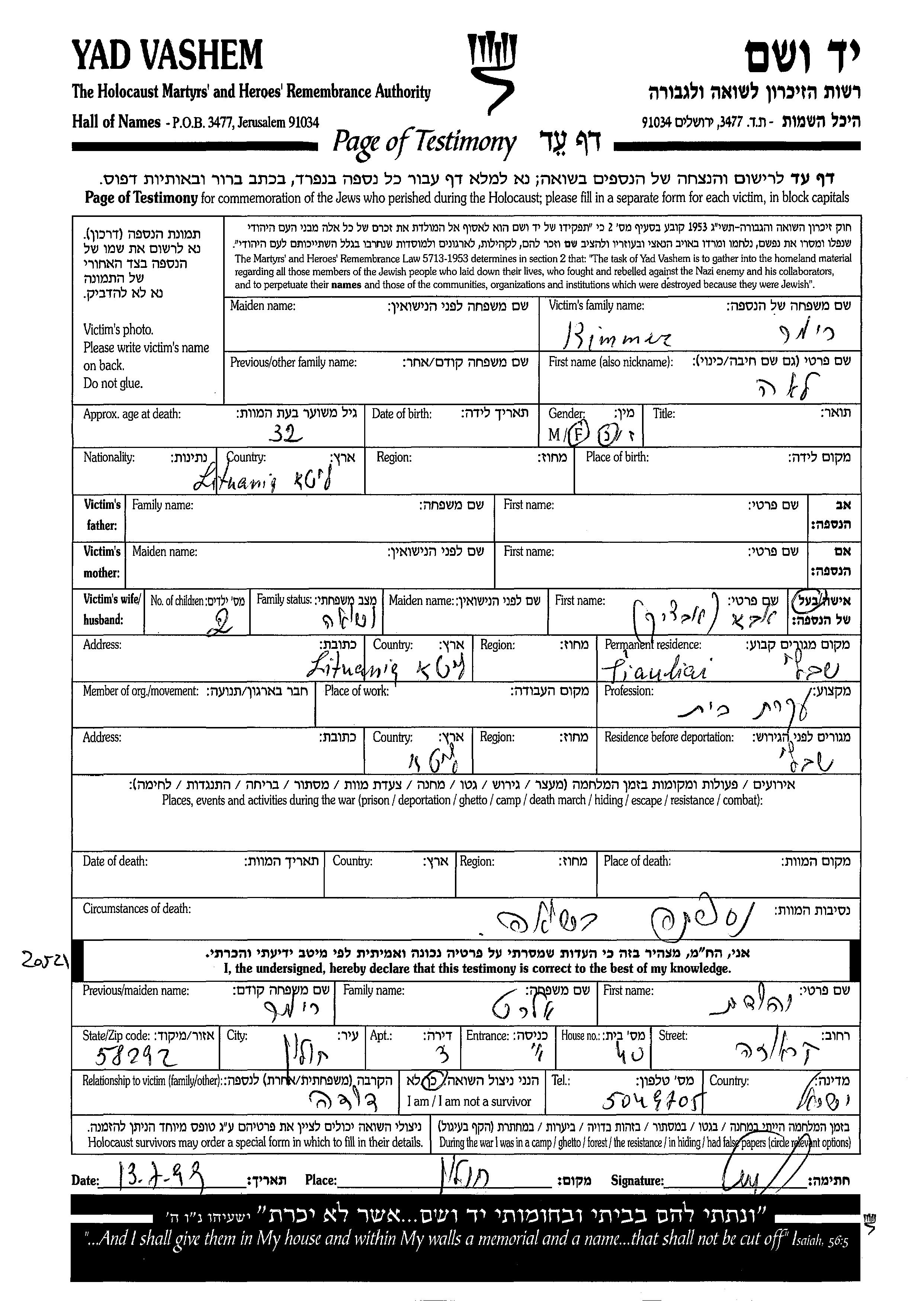Rimmer Lea Siauliai, Litauen Gedenkblatt