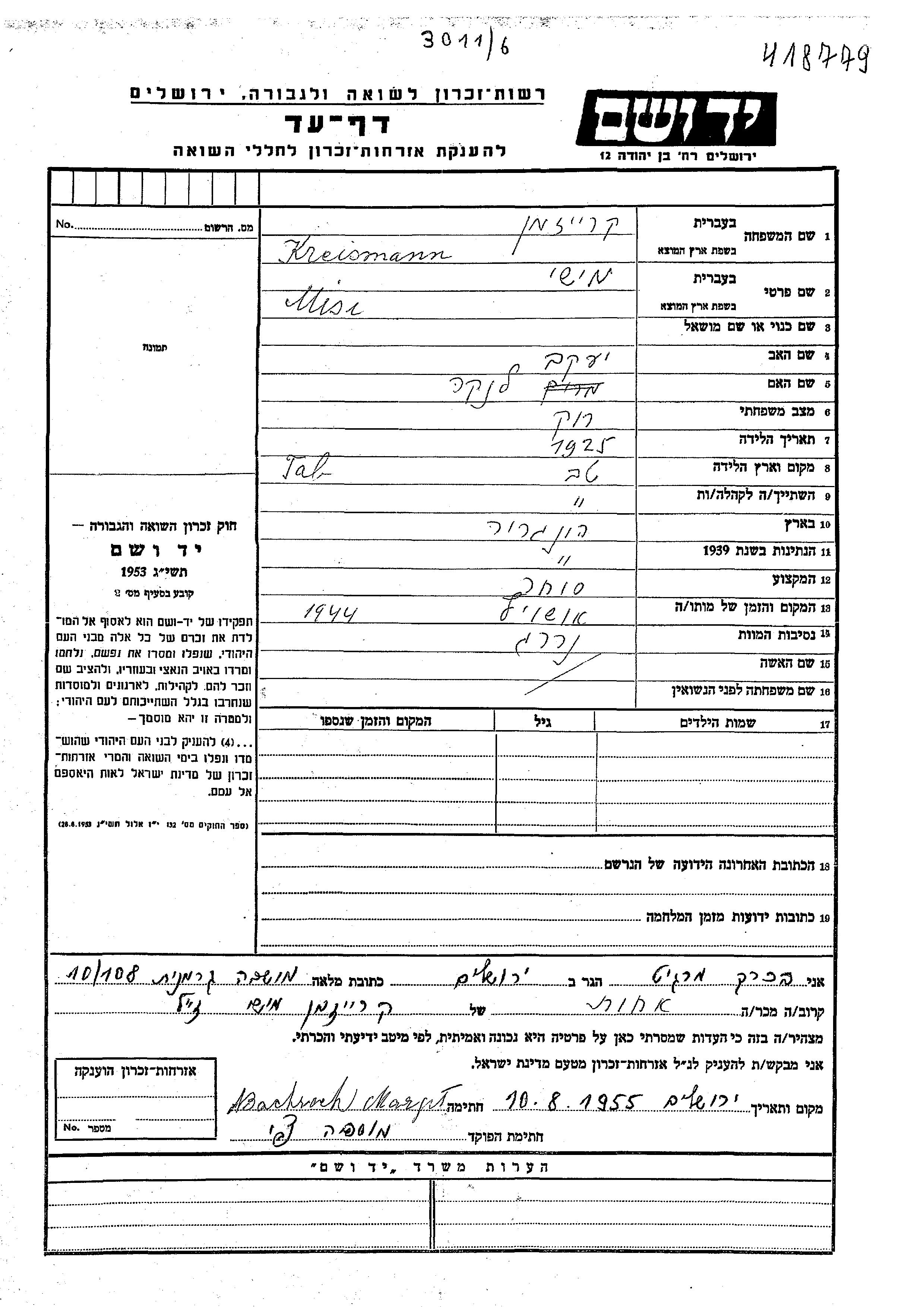 Kreismann | Mihaly | 1926 | Tab, Ungarn | Liste von ermordeten Juden aus Ungarn |