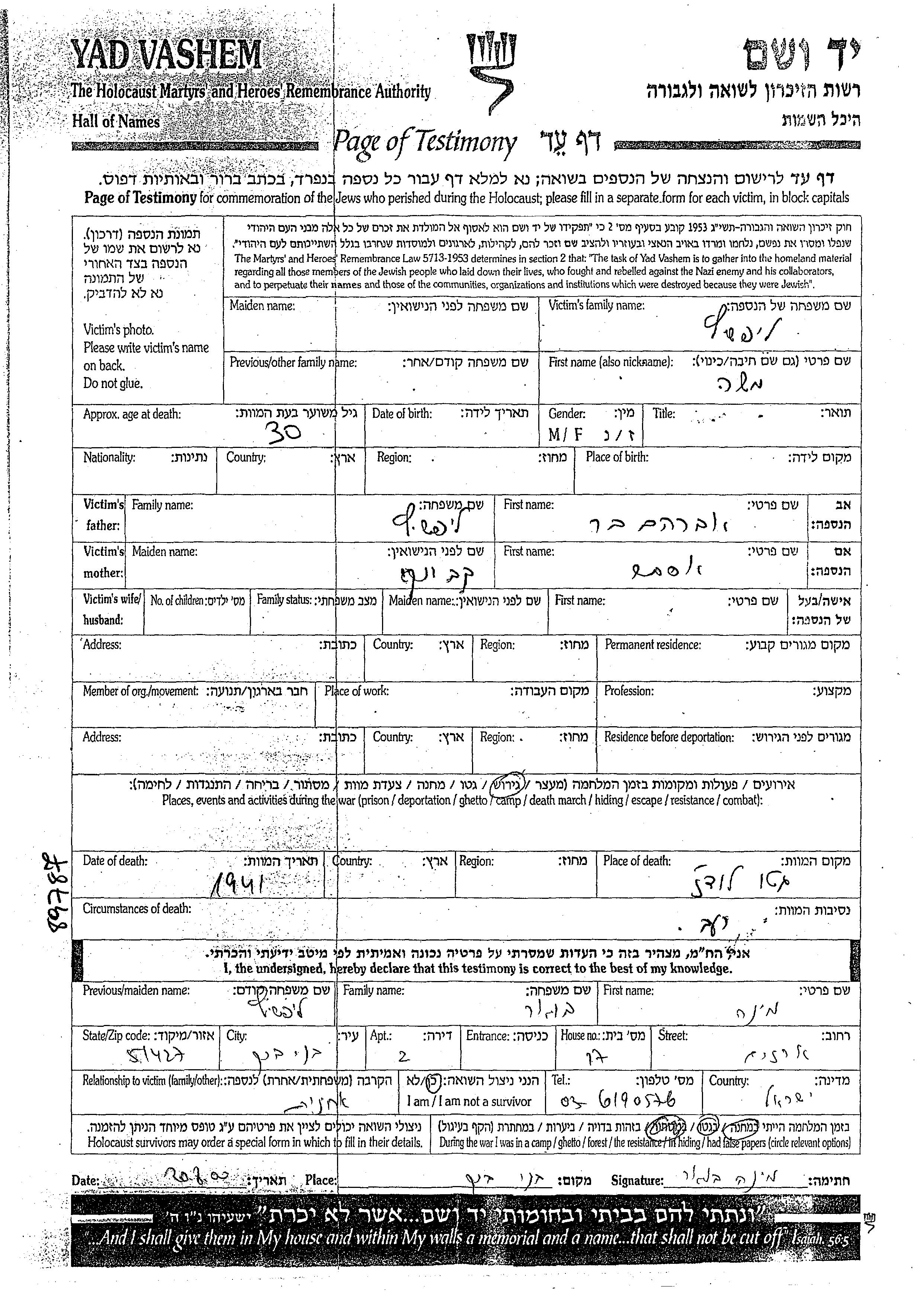 Moshe Lipszyc wurde im Jahr 1913 in Lodz, Polen geboren. Er war Kaufmann/-frau. Vor dem Zweiten Weltkrieg lebte er in Lodz, Polen.
