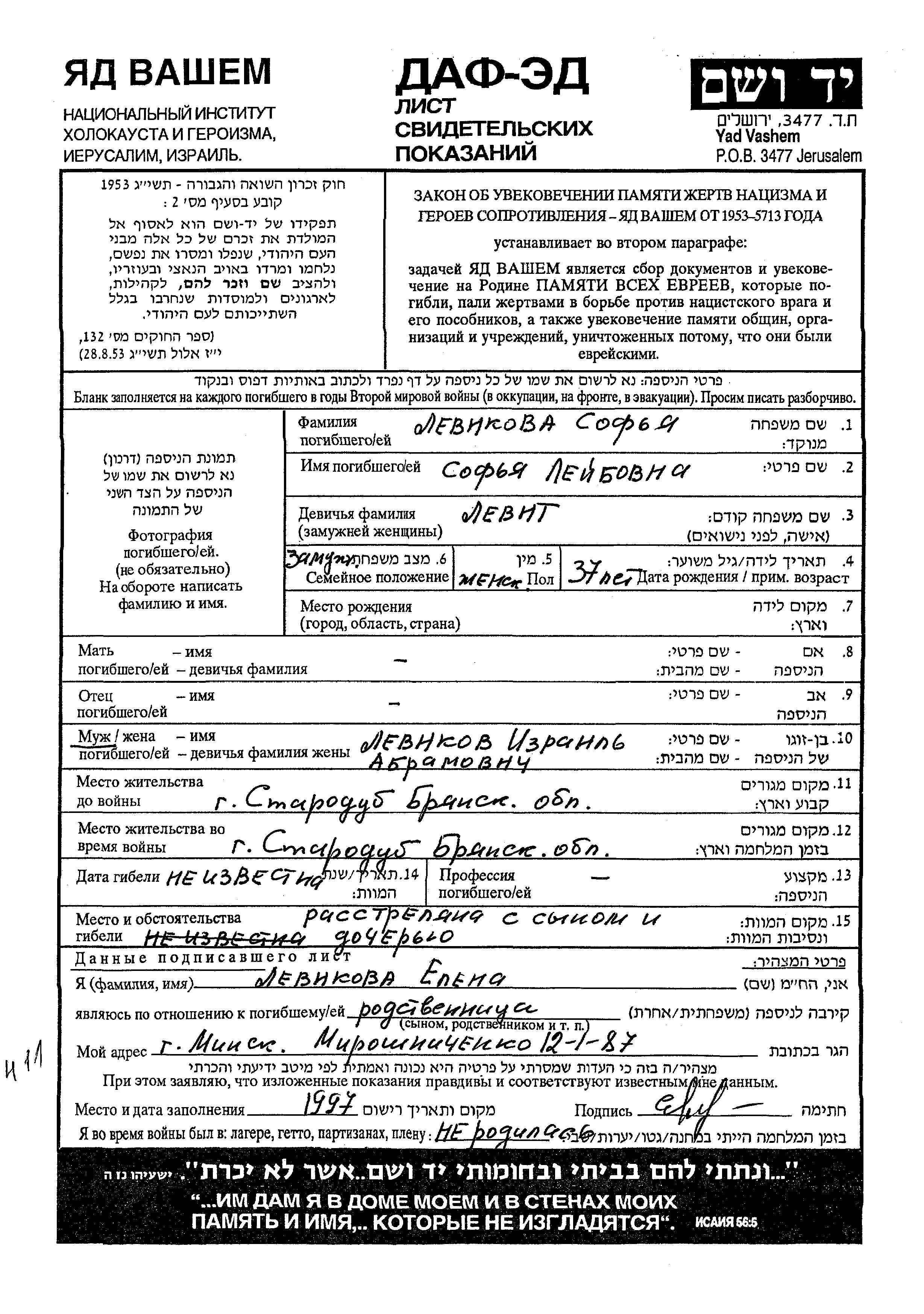Sofya wurde in der Schoah ermordet. Todesort: unbekannter Ort.