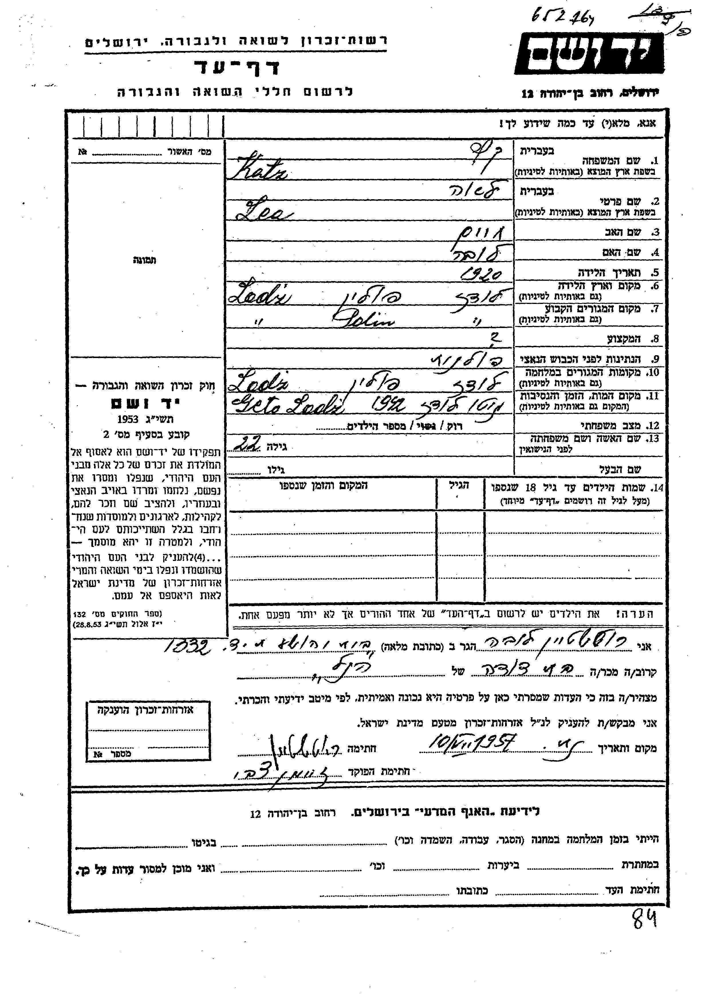 Lea Rivka wurde in der Schoah ermordet. Todesort: Lodz, Polen im Jahr 1942.