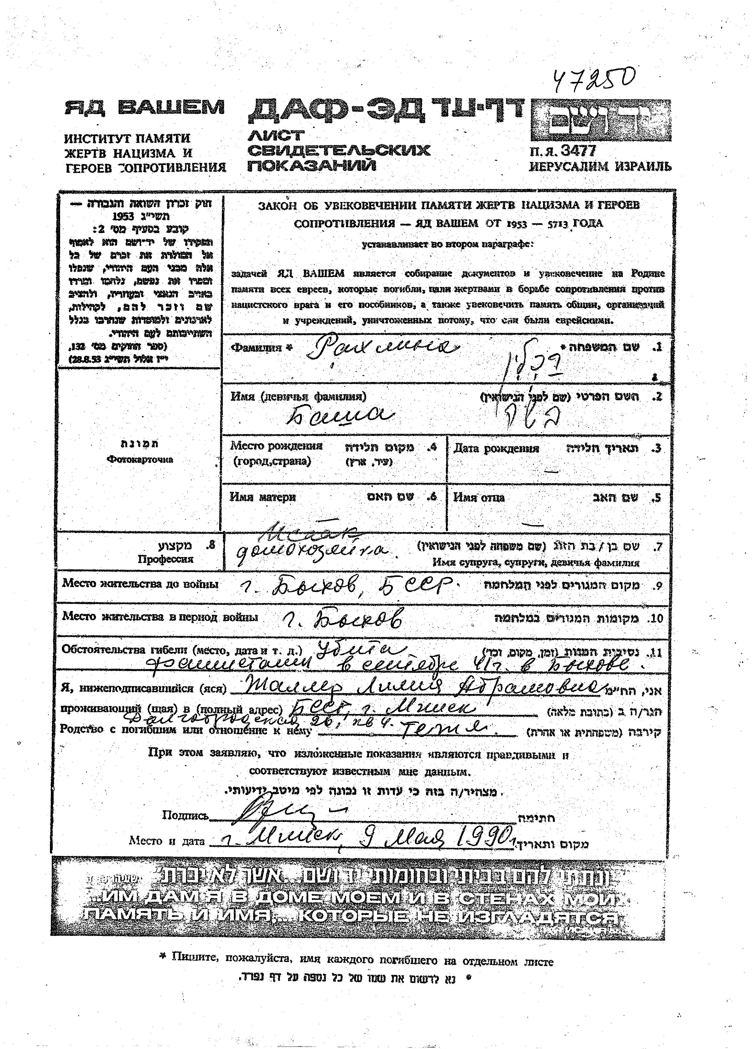 Basha wurde in der Schoah ermordet. Todesort: Bykhov, Weißrussland (UdSSR) im Jahr 1941.
