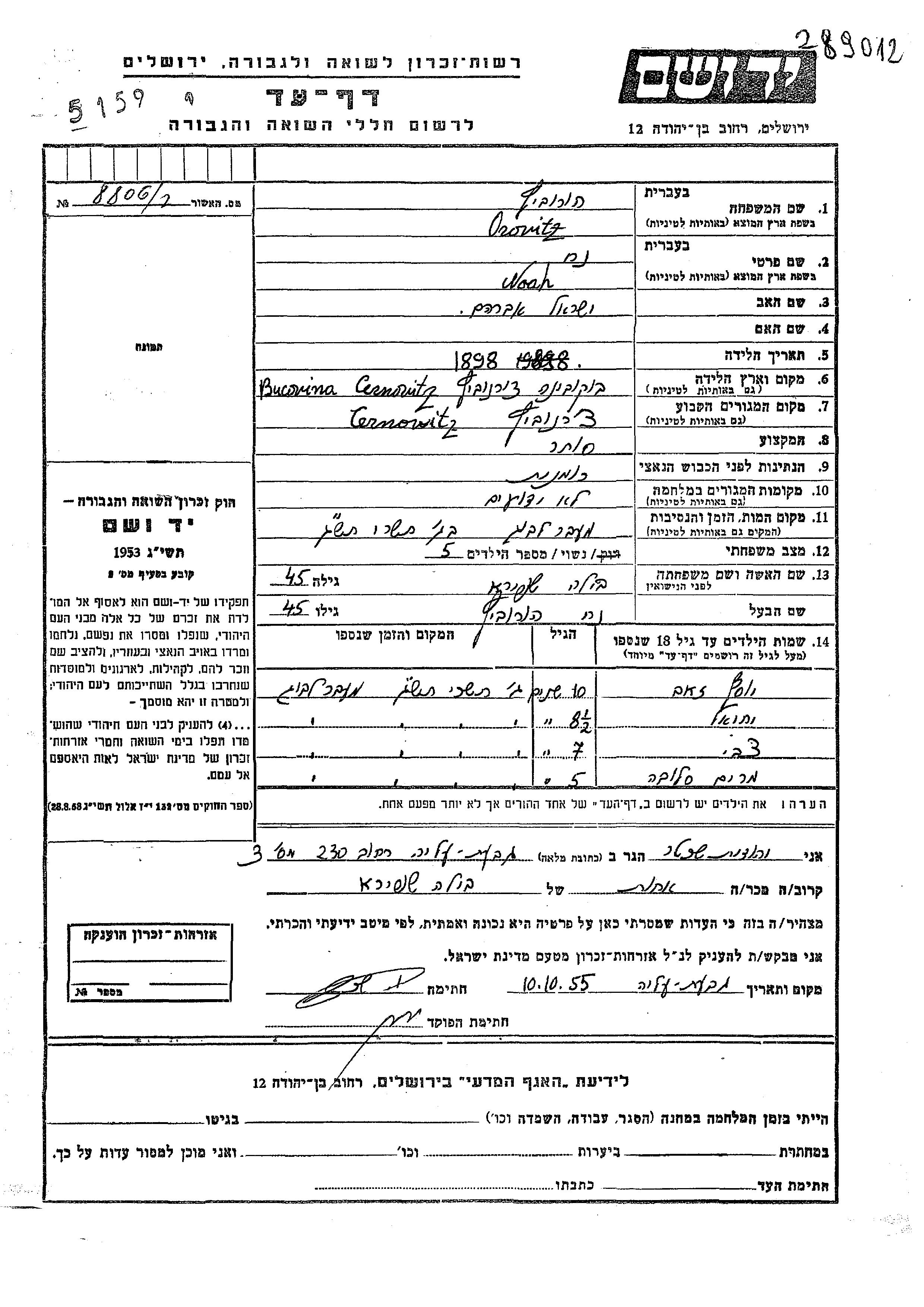 Orovitz Noah 1898 Czernowitz, Rumänien Gedenkblatt