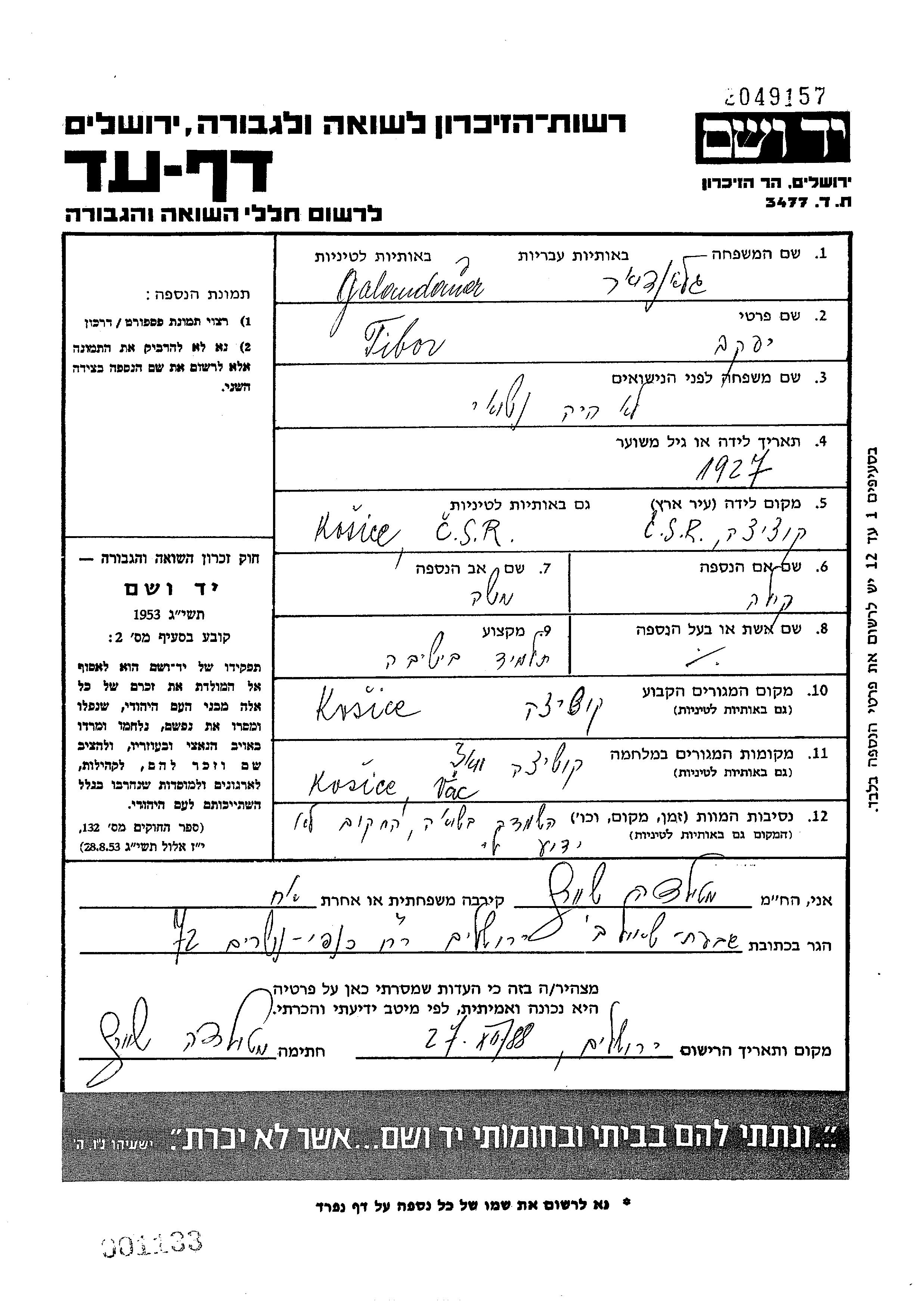 Yaakov Tibor wurde in der Schoah ermordet. Todesort: Auschwitz, Polen.