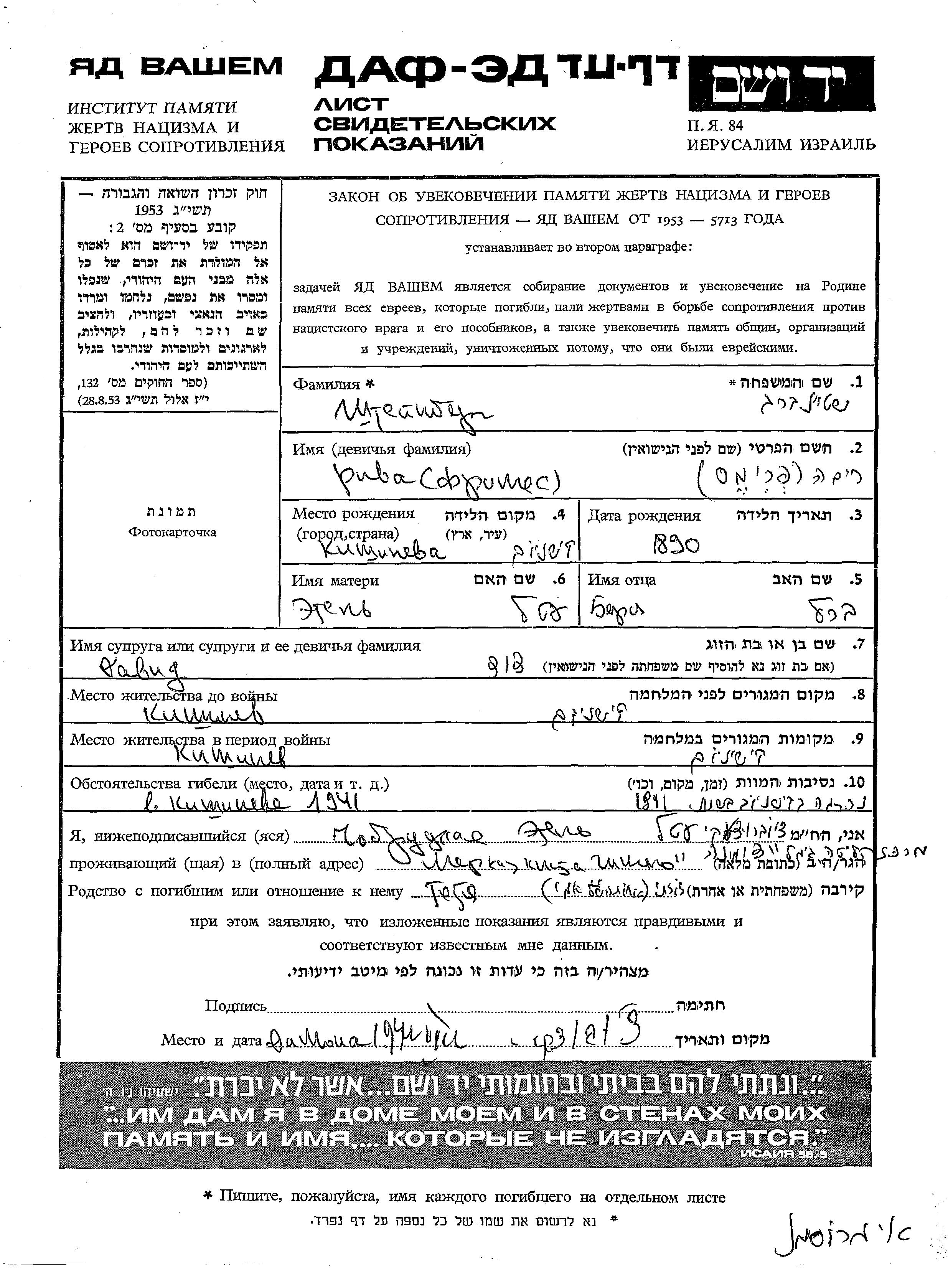 Riva wurde in der Schoah ermordet. Todesort: Chisinau, Rumänien im Jahr 1941.
