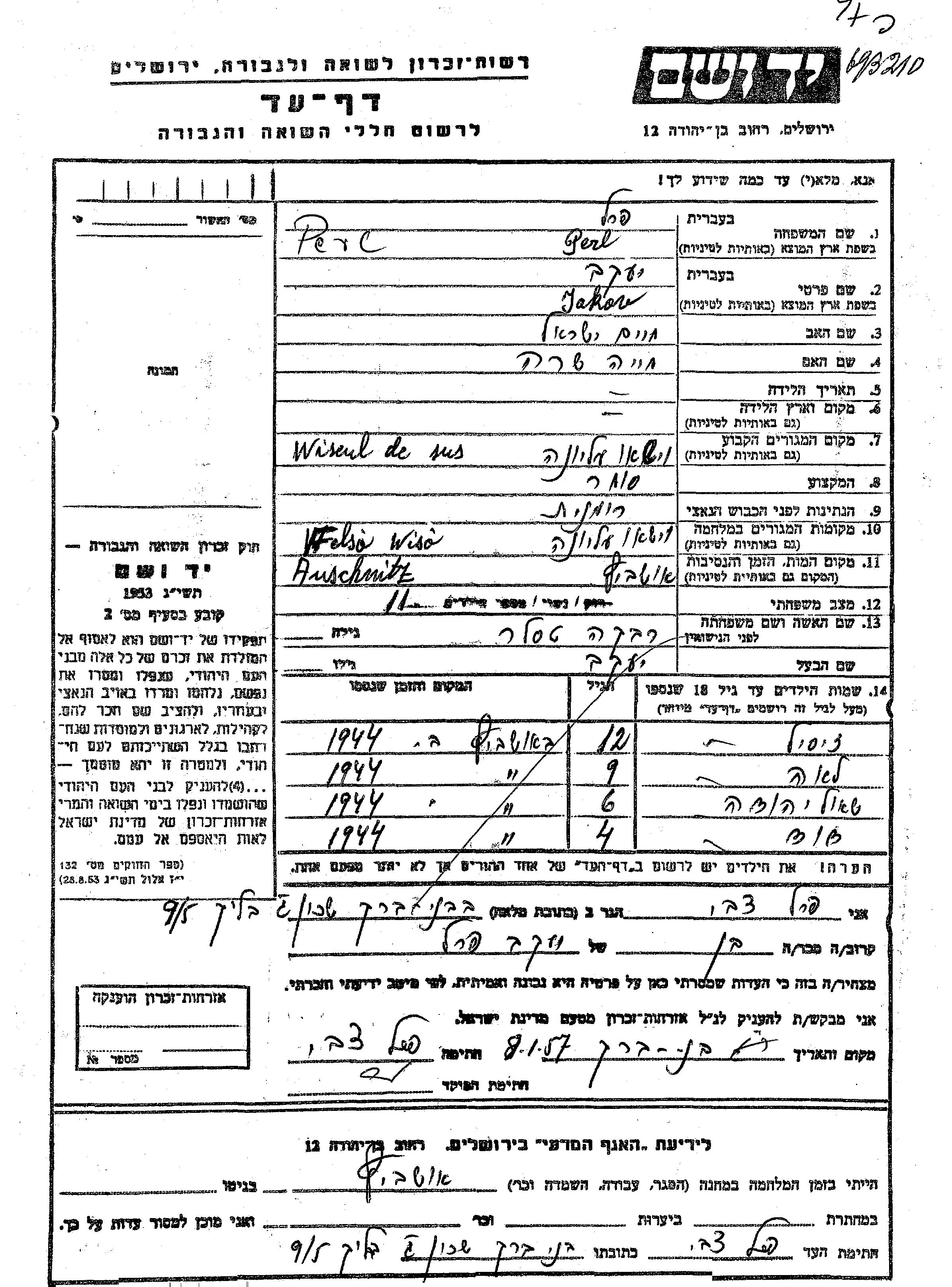 Zisil Perl. Vor dem Zweiten Weltkrieg er/sie in Viseul de Sus, Rumänien.
