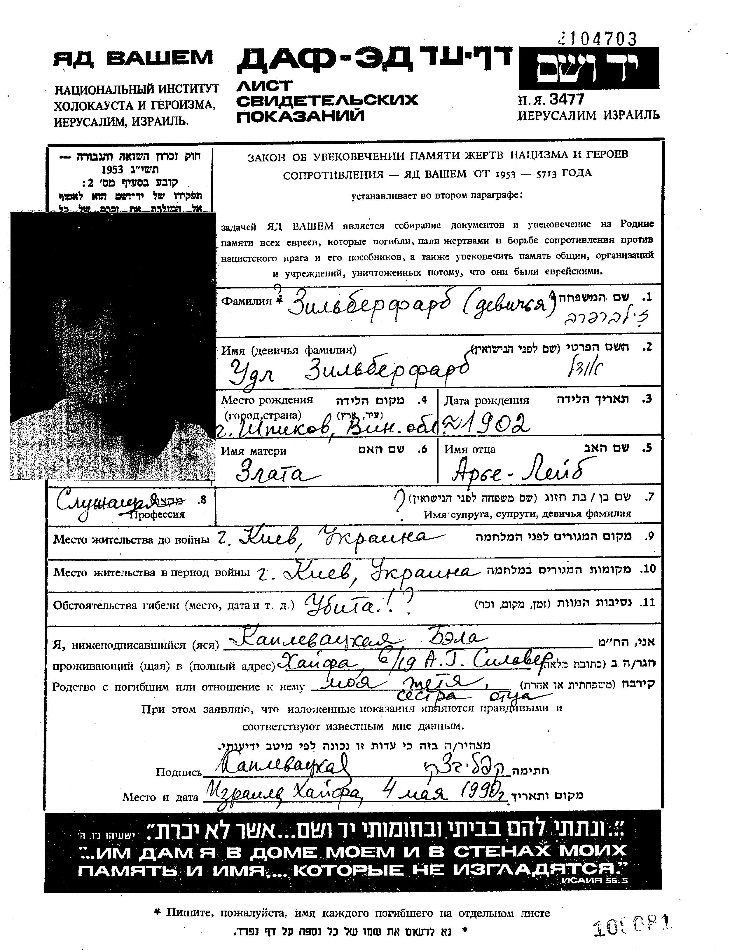 Name unbekannt | Udl Udel | 1902 | Kiyev, Ukraine (UdSSR) | Gedenkblatt |