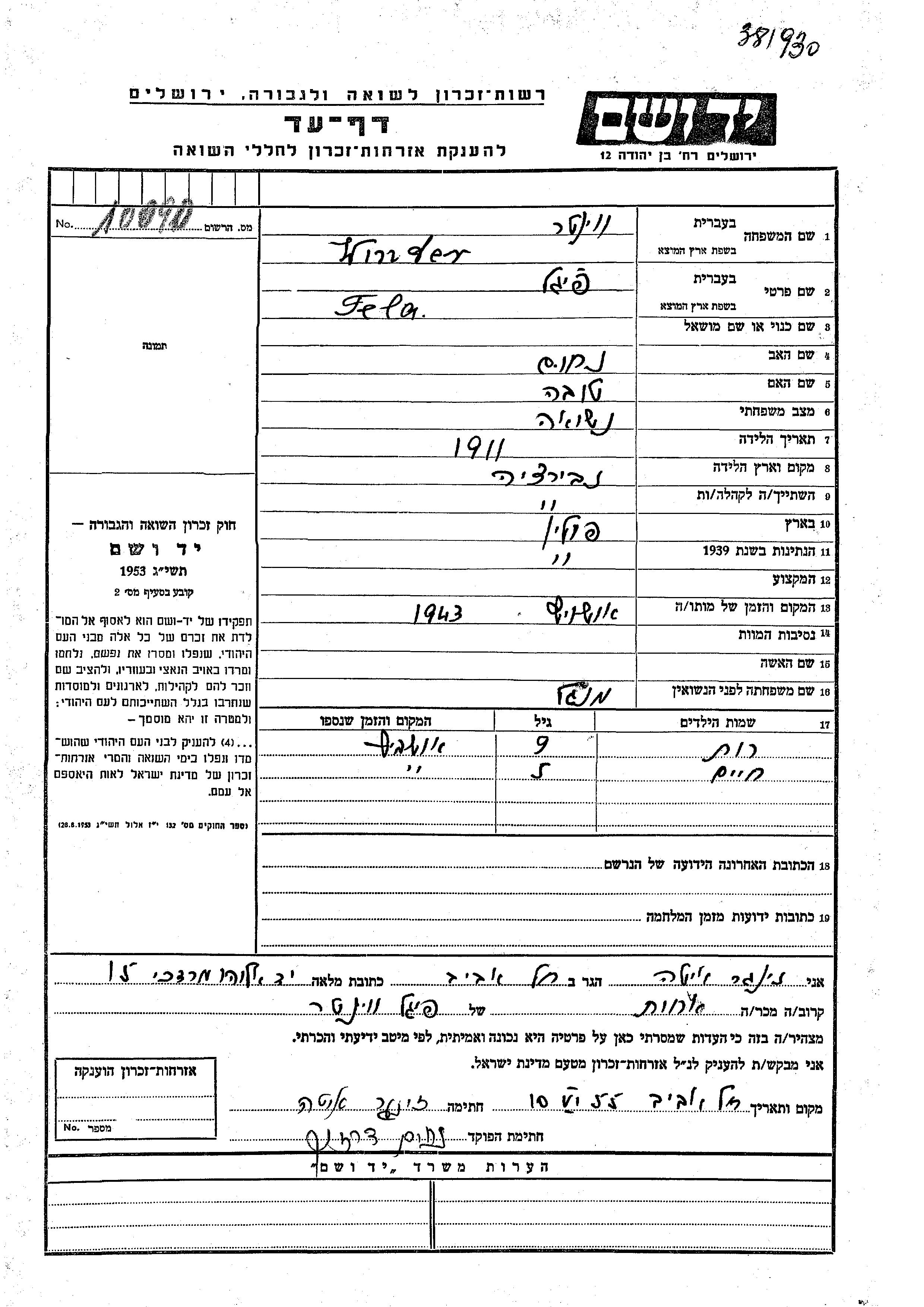 Khaim Winter. Vor dem Zweiten Weltkrieg lebte er in Zawiercie, Polen.