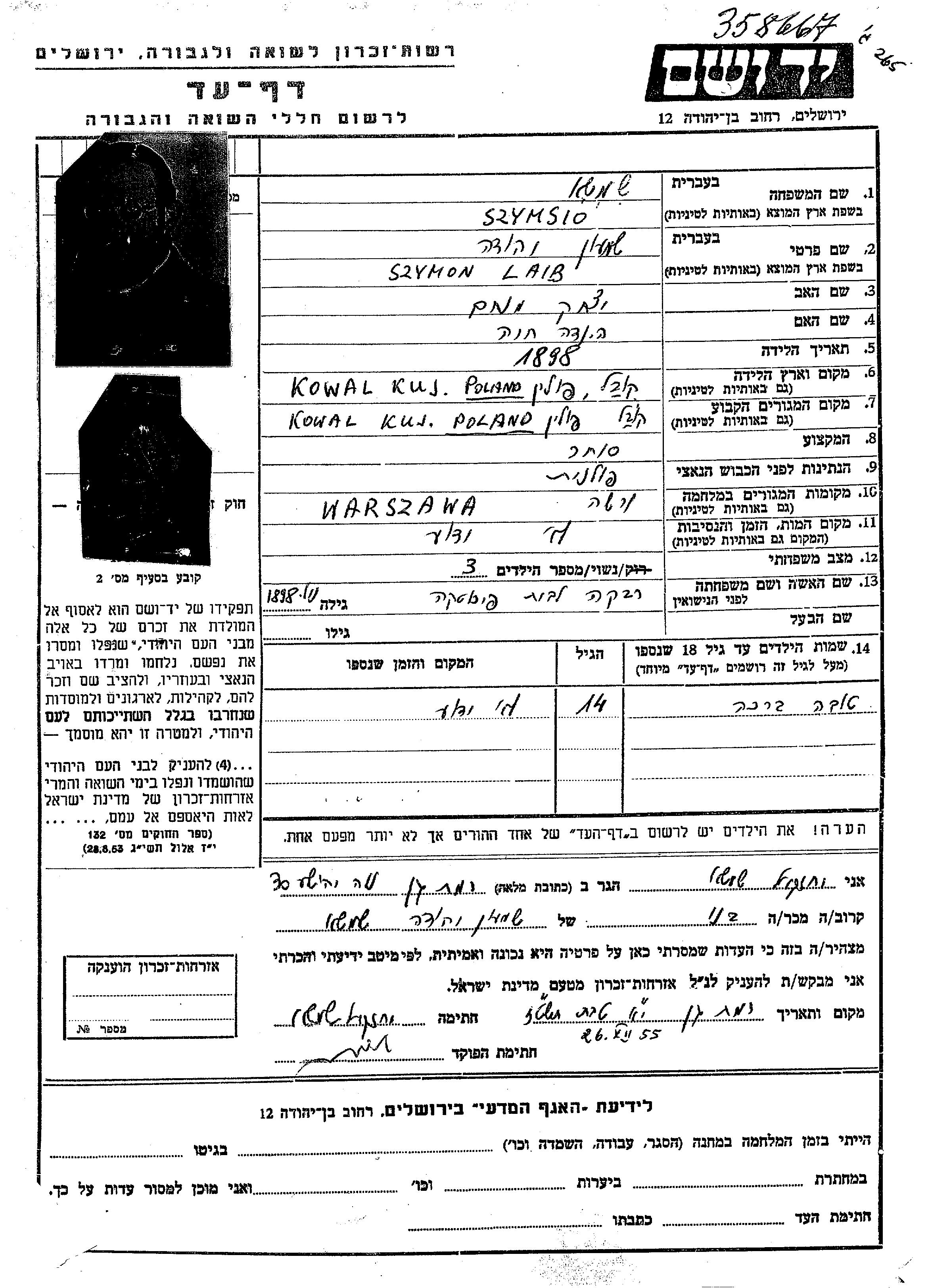 Simsa | Shimon Lev Yehuda Laib | 1897 | Kowal, Polen | Photos |