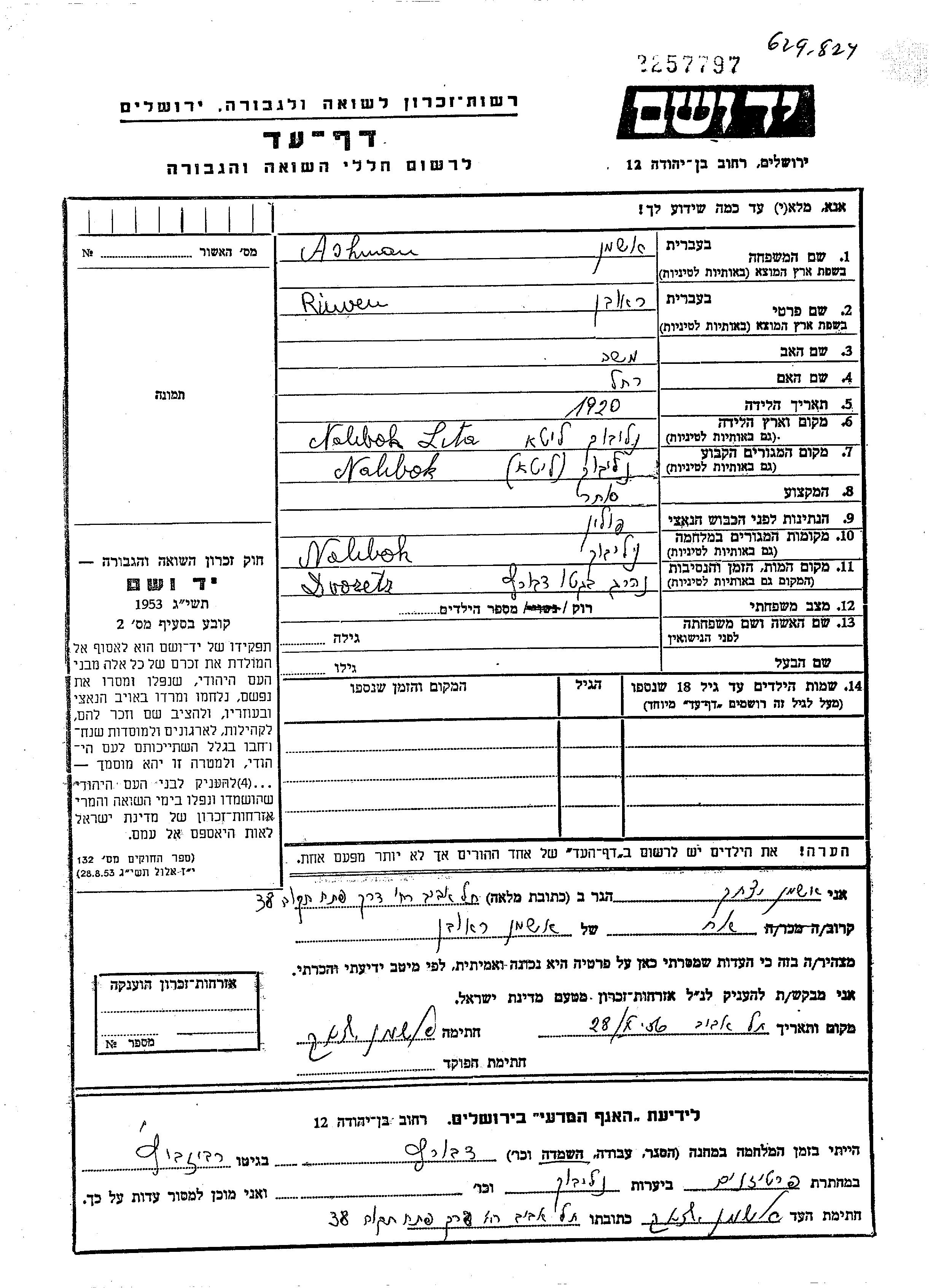 Ruven Ashman wurde im Jahr 1920 in Naliboki, Polen geboren. Er war der Sohn von Moshe und Rakhel. Er war Kaufmann/-frau und Ledig. Vor dem Zweiten Weltkrieg lebte er in Naliboki, Polen. Während des Krieges war er in Naliboki, Polen.