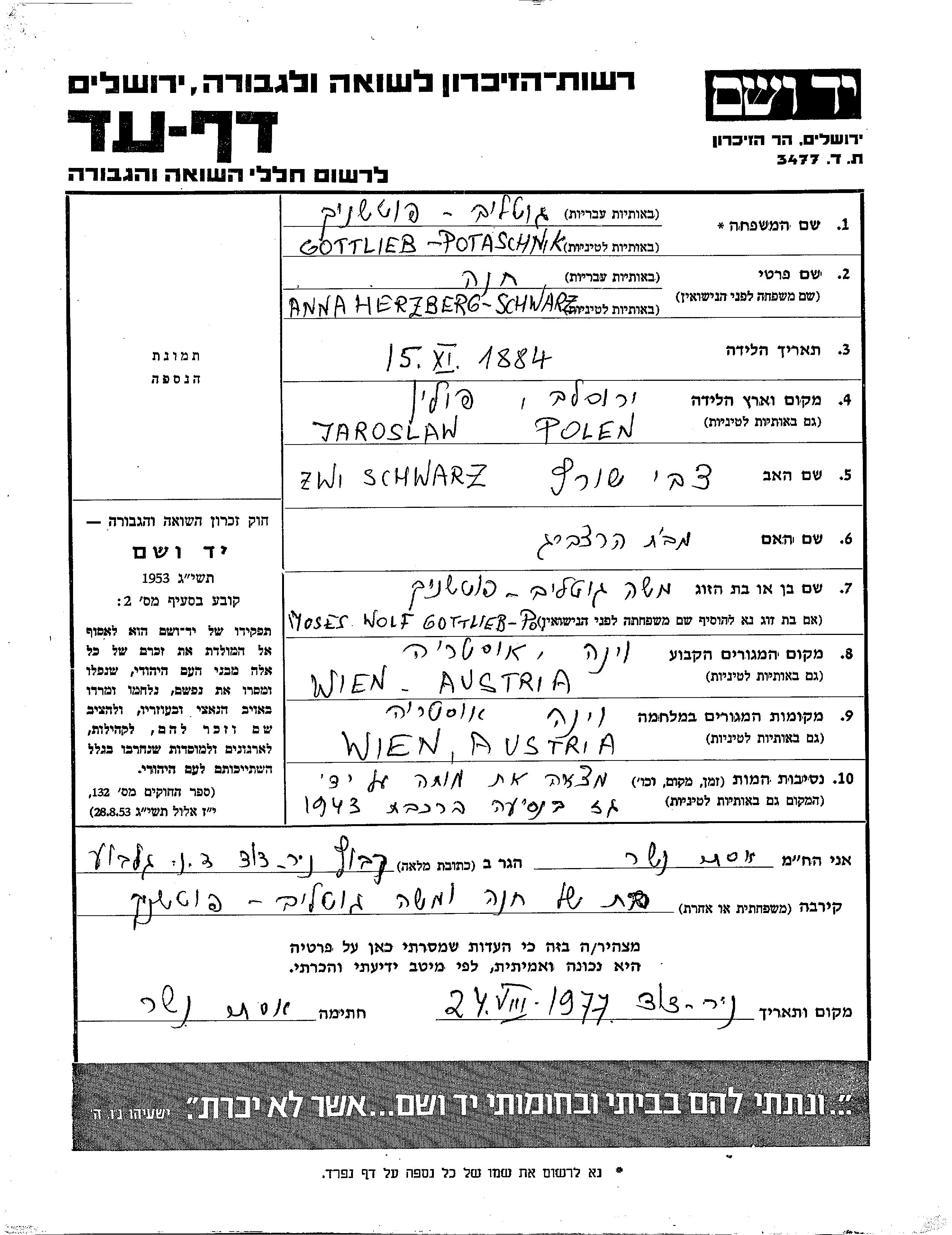 Gottlieb Potaschnik | Anna Khana | 1884 | Wien, Österreich | Gedenkblatt |