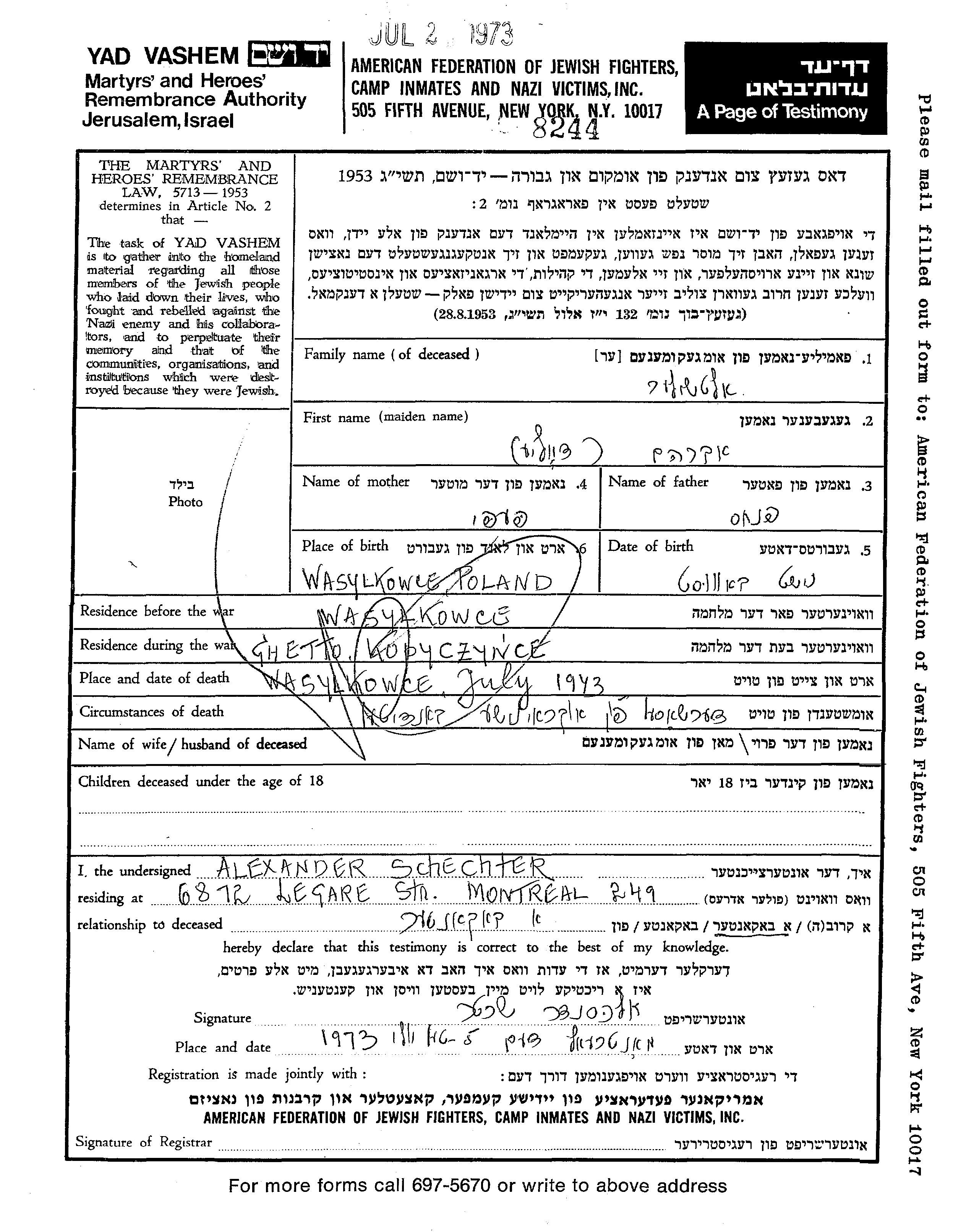 Suche nach einem Todesjahr im Zeitraum der Holocaust: 1933 bis 1945. Bitte wählen Sie 'Exakt' im Auswahlmenü, um nur nach einem einzelnen Jahr zu suchen, alternativ können Sie die flexibleren Optionen '+/- 2 Jahre' oder '+/- 5 Jahre' wählen.
