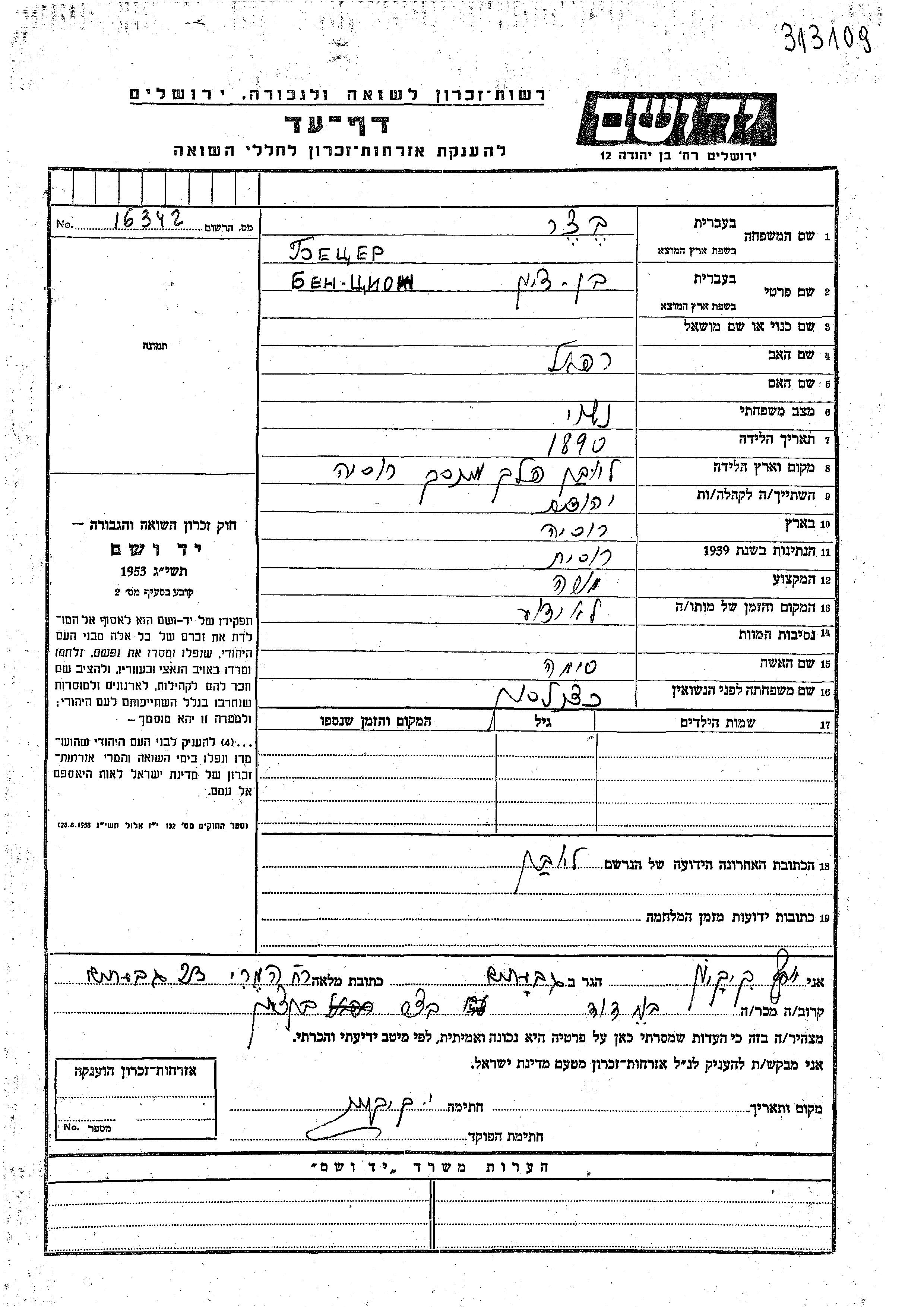 Bentzion wurde in der Schoah ermordet. Todesort: Lyuban, Weißrussland (UdSSR) im Jahr 07/11/1941.