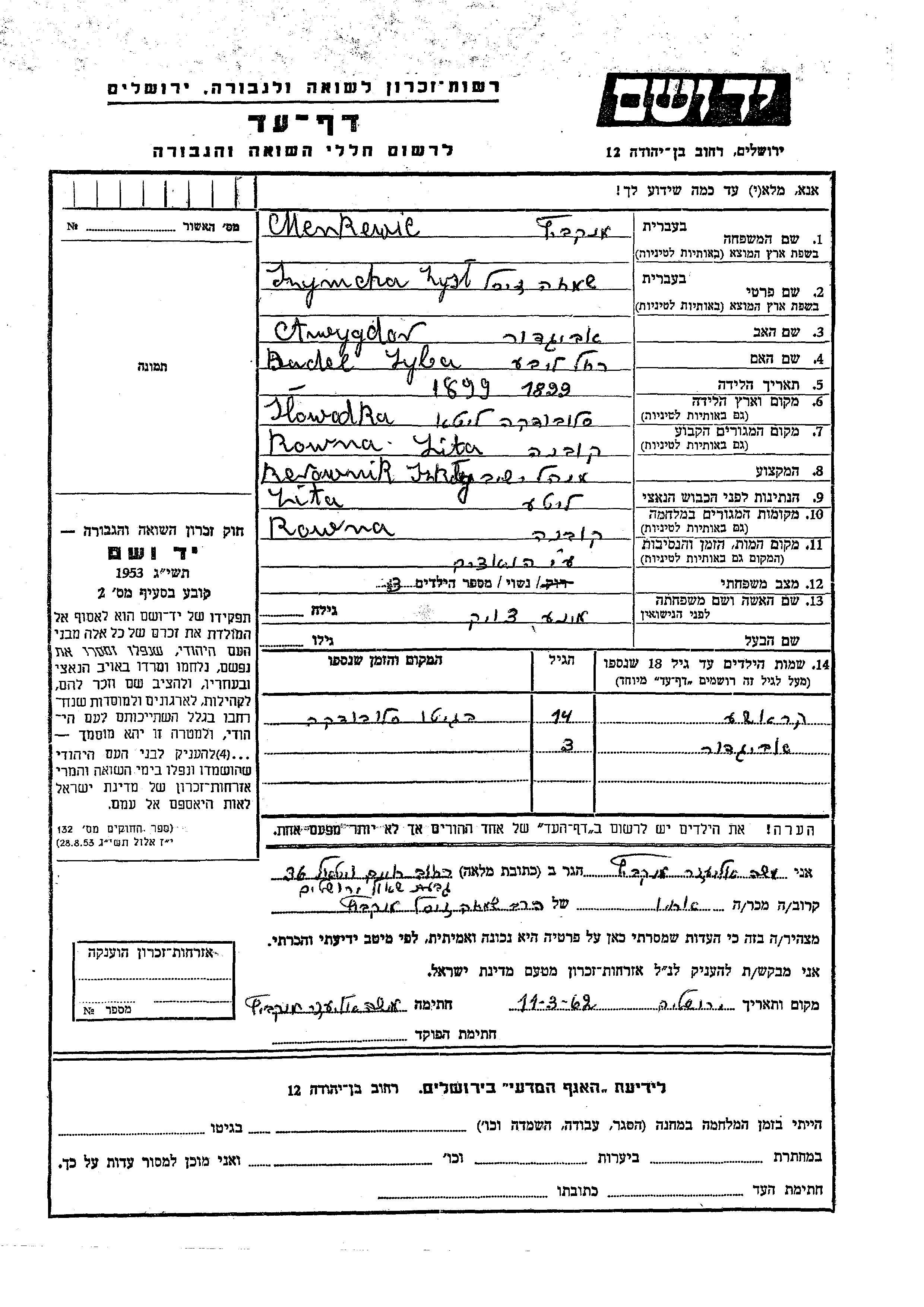 Menkewic Symcha Zysl 1899 Kowna, Litauen Gedenkblatt