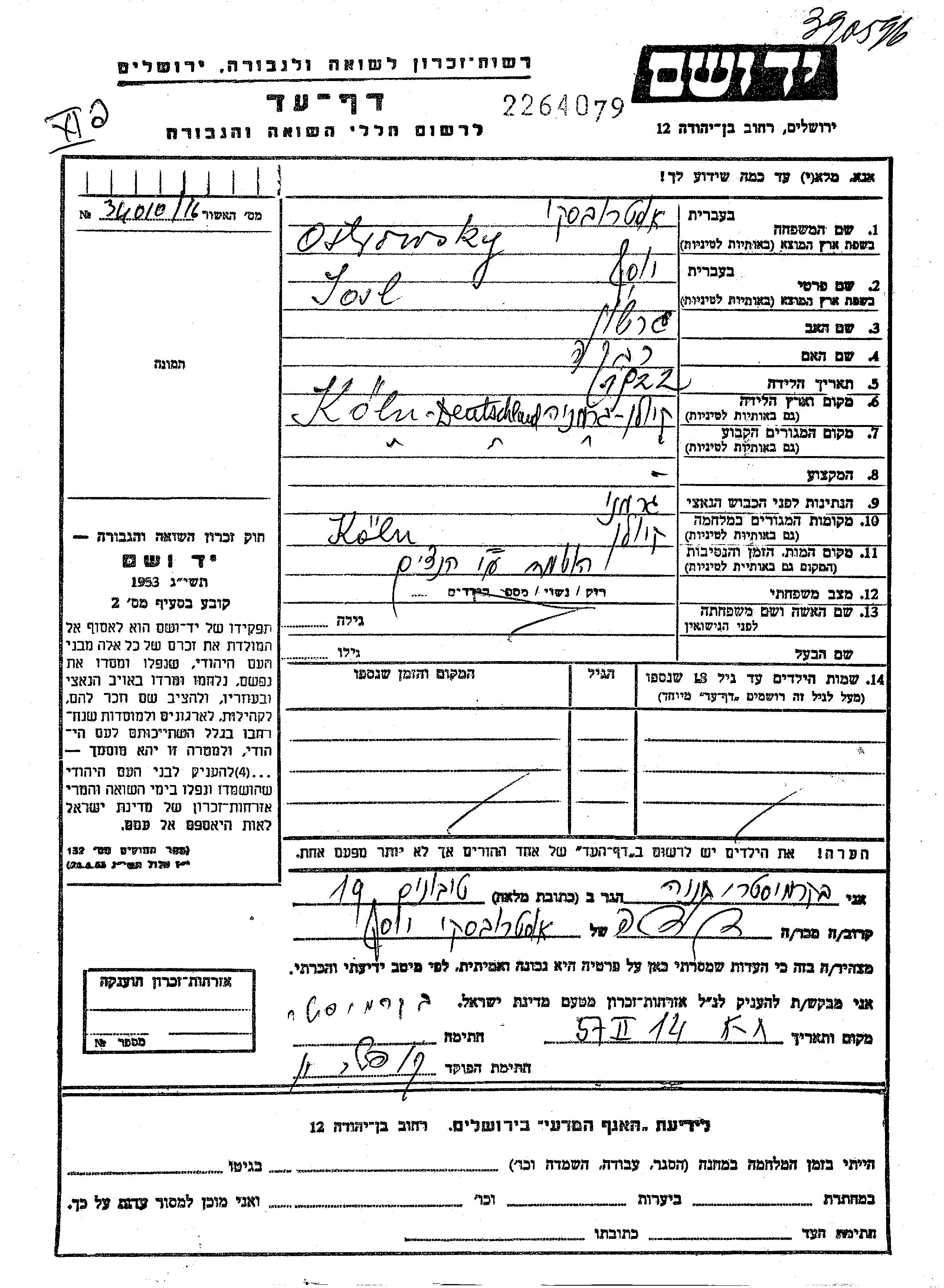Josef Ostrowsky wurde im Jahr 1922 in Koeln, Deutsches Reich geboren. Er war der Sohn von Gershon und Rivka. Er war Ledig. Vor dem Zweiten Weltkrieg lebte er in Koeln, Deutsches Reich. Während des Krieges war er in Koeln, Deutsches Reich.