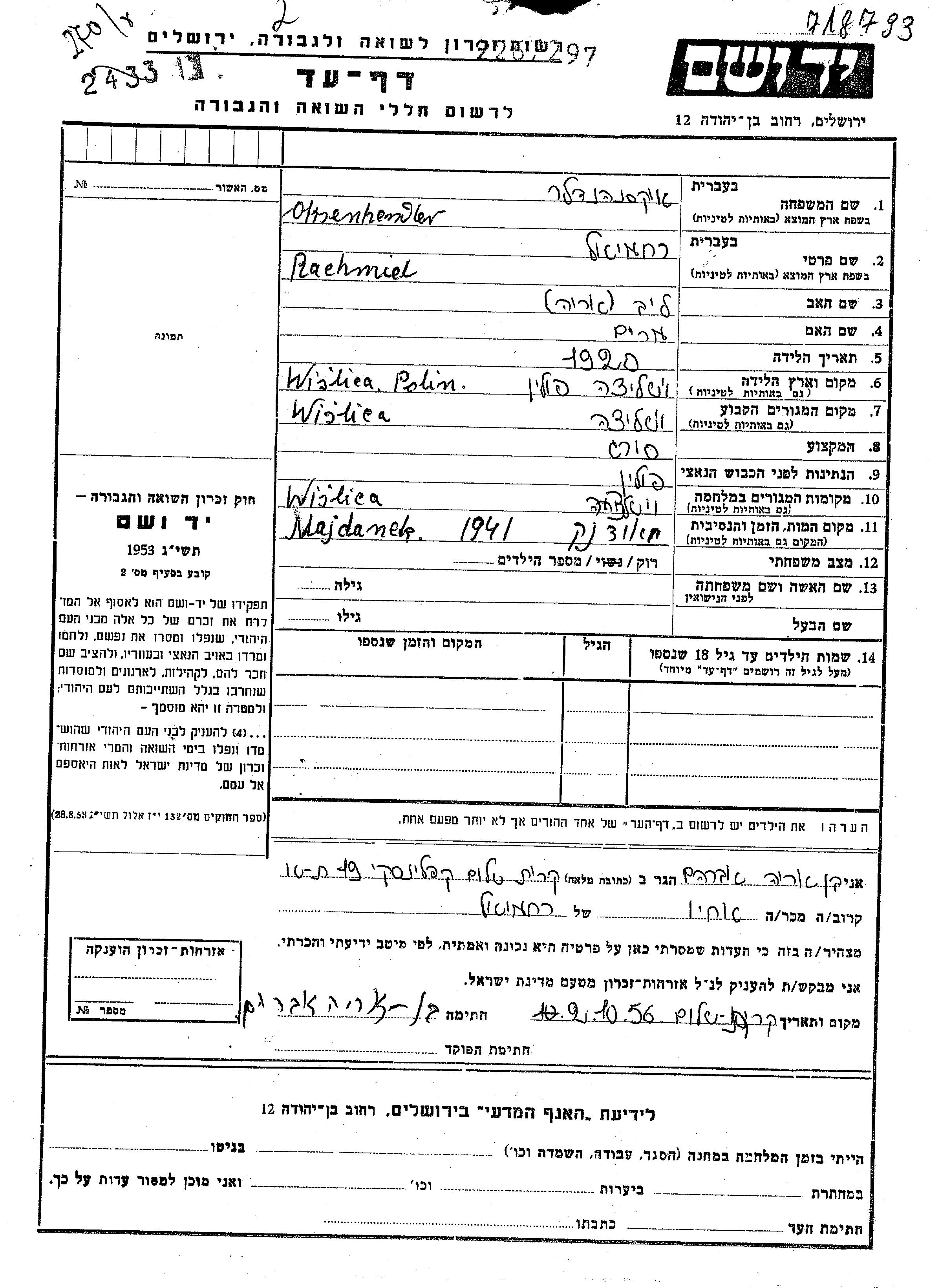Rachmiel wurde in der Schoah ermordet. Todesort: Majdanek, Polen im Jahr 1941.