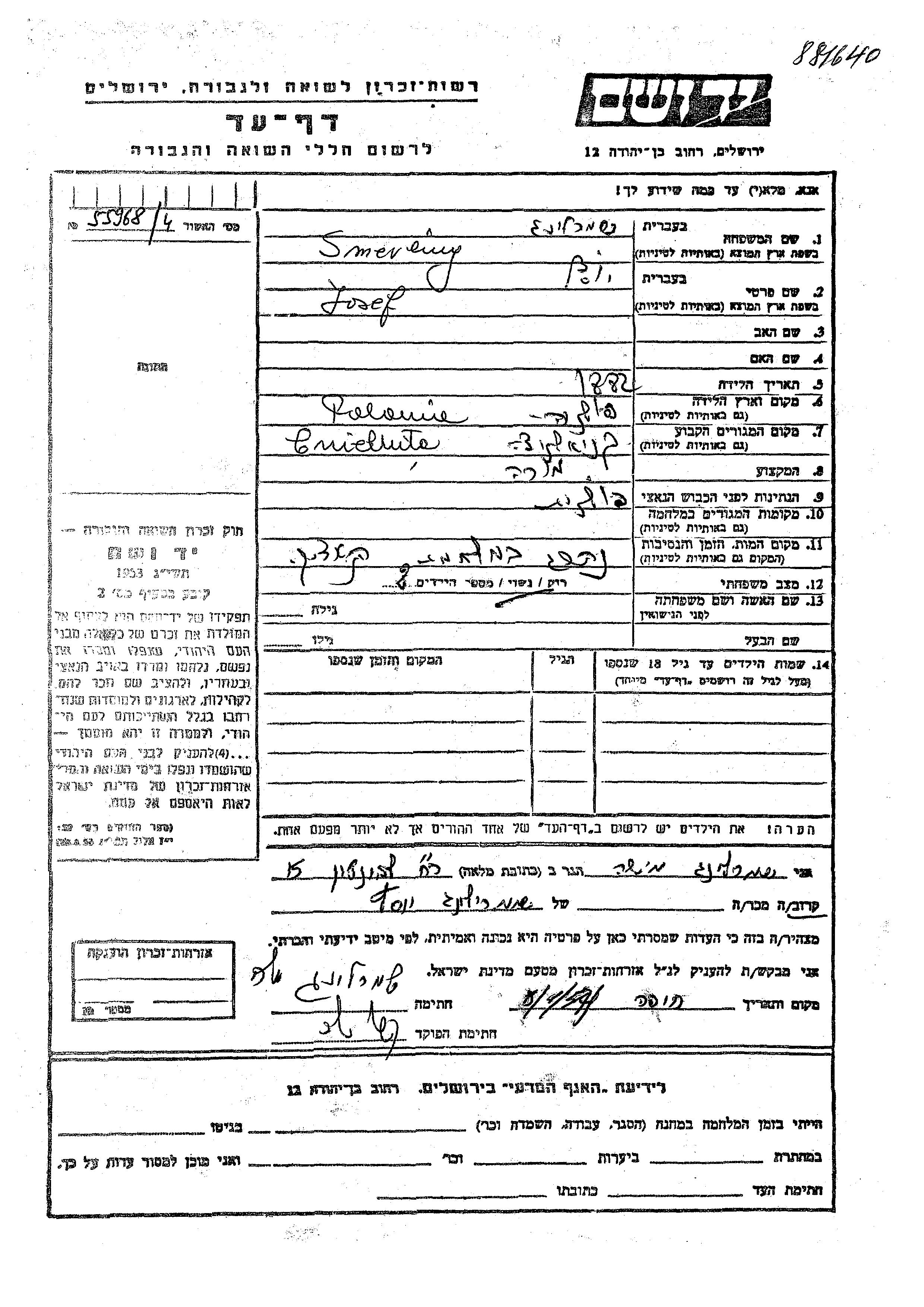 Josef Smerling wurde im Jahr 1882 in Polen geboren. Er war Lehrer/in und Verheiratet. Vor dem Zweiten Weltkrieg lebte er in Cnichnita, Polen.