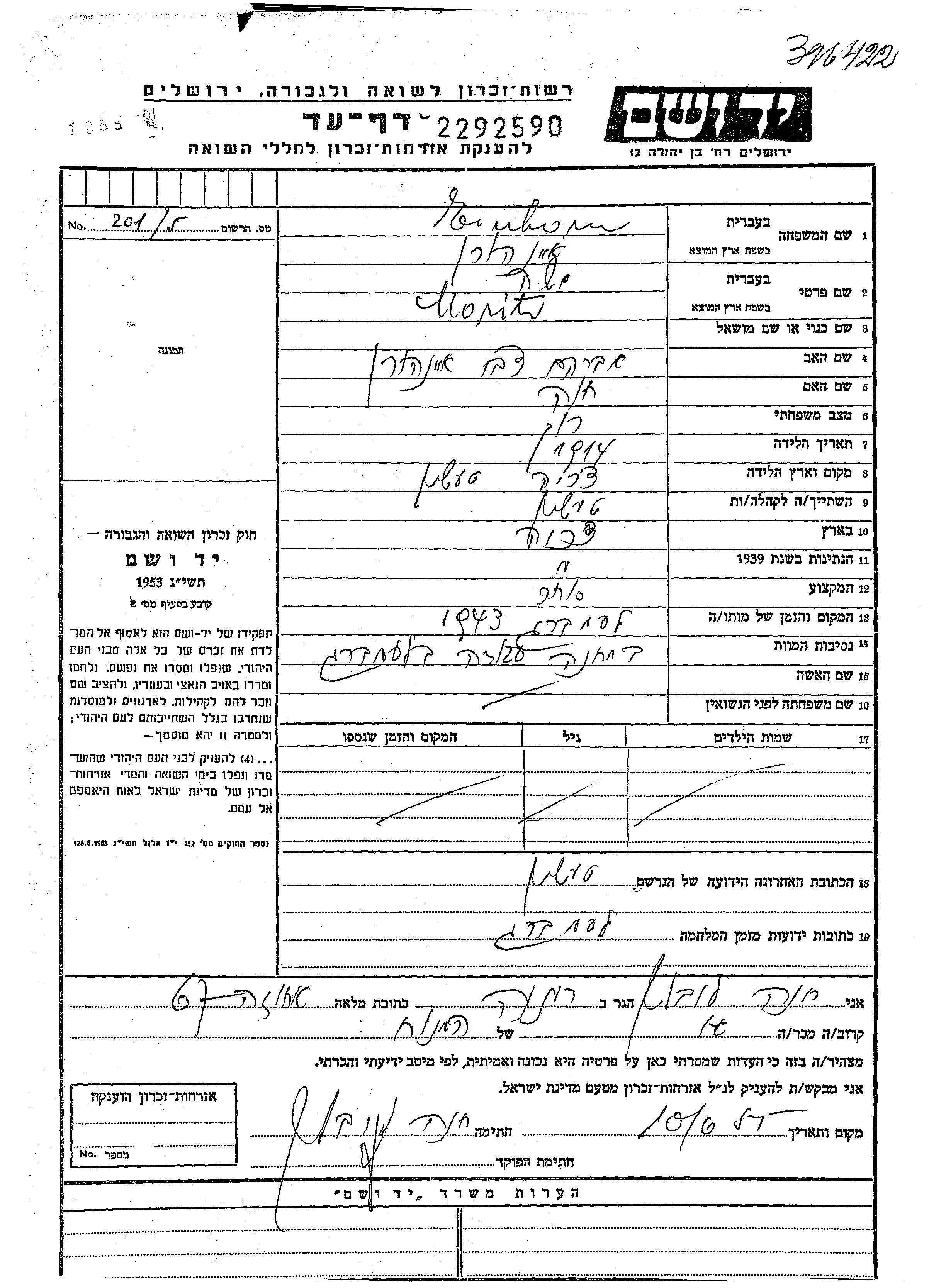 Moshe Moritz wurde in der Schoah ermordet. Todesort: Lemberg, Polen.
