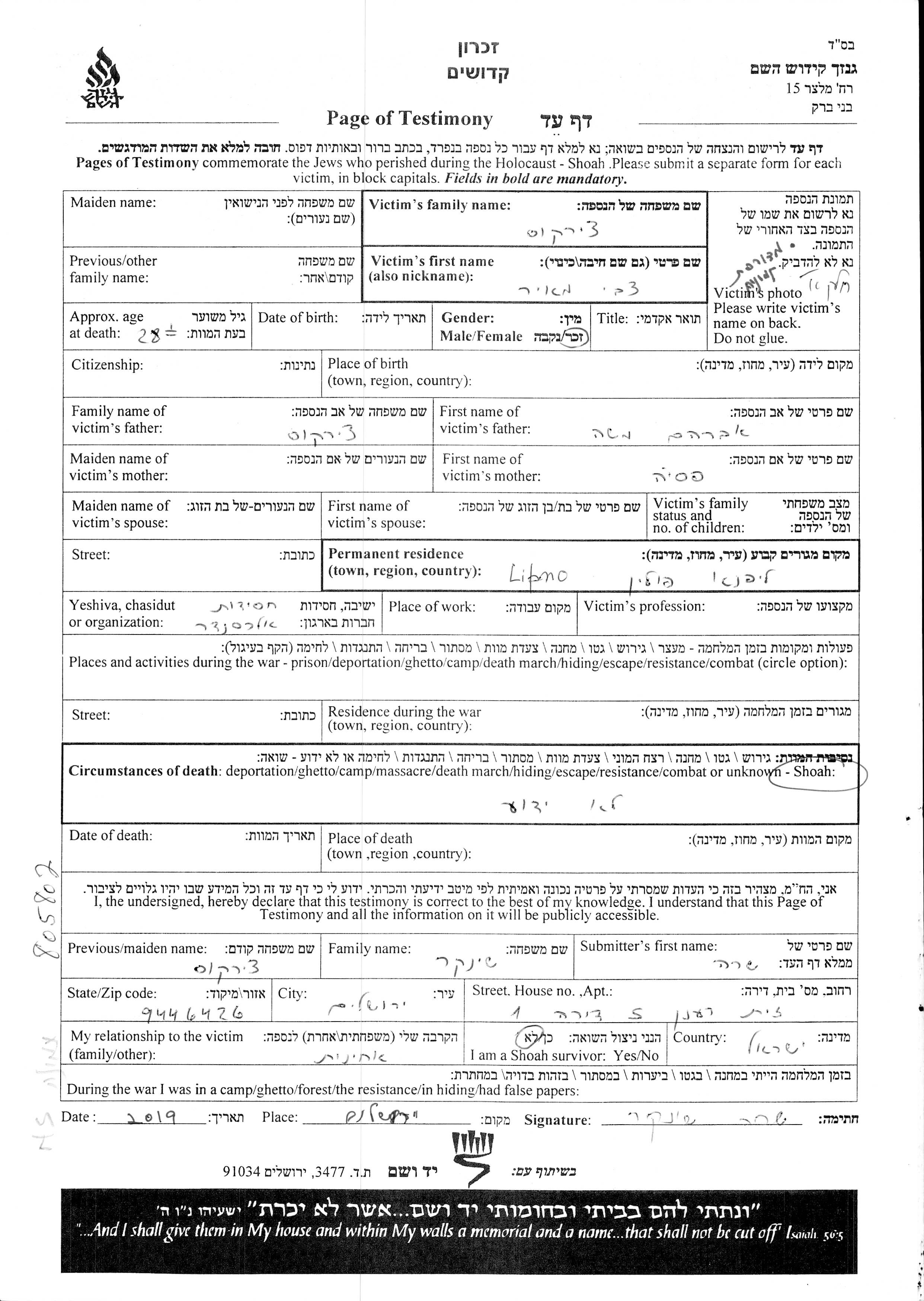 Tzvi Meir Tzirkus wurde Er war der Sohn von Avraham Moshe und Pesia. Vor dem Zweiten Weltkrieg lebte er in Lipno, Polen.